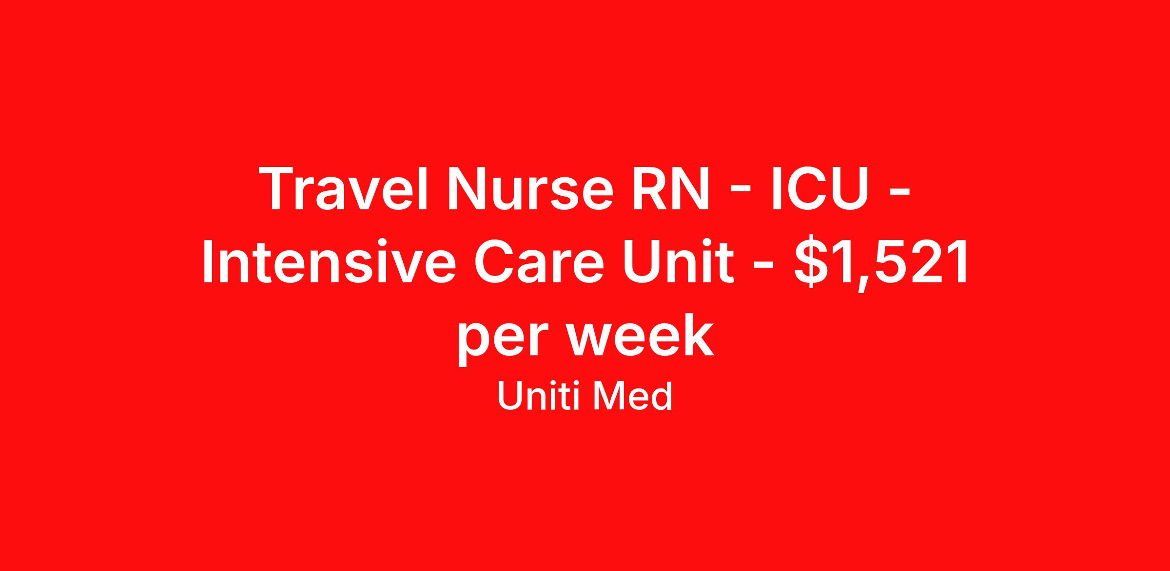 Travel Nurse RN - ICU - Intensive Care Unit - $1,521 per week