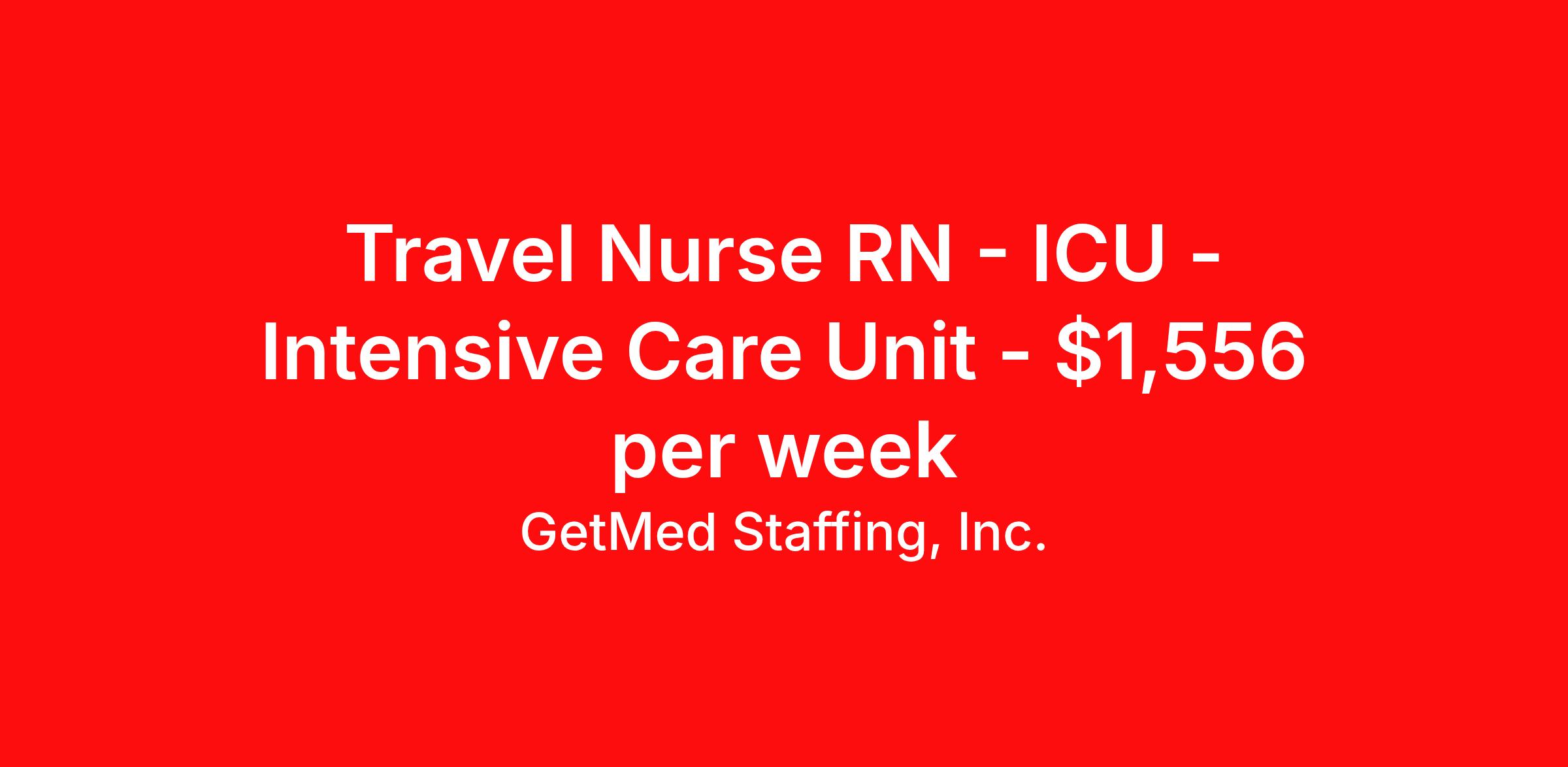 GetMed Staffing, Inc. is seeking a travel nurse RN ICU - Intensive Care Unit for a travel nursing job in Atlanta, Georgia. Job Description & Requirements Specialty: ICU - Intensive Care Unit Discipline: RN Start Date: 04/20/2026 Duration: 8 weeks 36 hours per week Shift: 12 hours, nights Employment Type: Travel GetMed Staffing is searching for a strong ICU RN to assist our traveler-friendly client. A minimum of 1-2 years of experience is required. Traveling with GetMed Staffing offers the unique opportunity to gain diverse experiences, both personally and professionally. Gain experience that matters. GetMed Staffing, Inc. Job ID 36188161. Pay package is based on 12 hour shifts and 36.0 hours per week (subject to confirmation) with tax-free stipend amount to be determined. Posted job title: RN:ICU,19:00:00-07:00:00 About GetMed Staffing, Inc. We are a diversity owned company, specializing in healthcare recruiting services. We truly understand how important a healthcare travelers' relationship is with their recruiter, as well as our relationship is with our healthcare facilities. We recognize that the needs of our healthcare travelers can vary, and therefore we provide the personalized touch necessary to ensure a successful travel assignment each and every time. Our healthcare facilities and clients benefit from us putting our healthcare travelers first. GetMed Staffing is excited to be a leader within the industry by focusing on providing healthcare travelers with more choices and possibilities as they plan for their next healthcare travel assignment. Benefits Life insurance Medical benefits Dental benefits Vision benefits 401k retirement plan