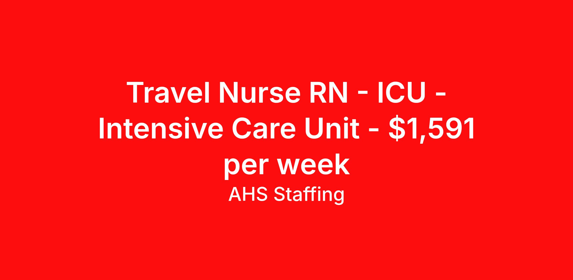 Travel Nurse RN - ICU - Intensive Care Unit - $1,591 per week