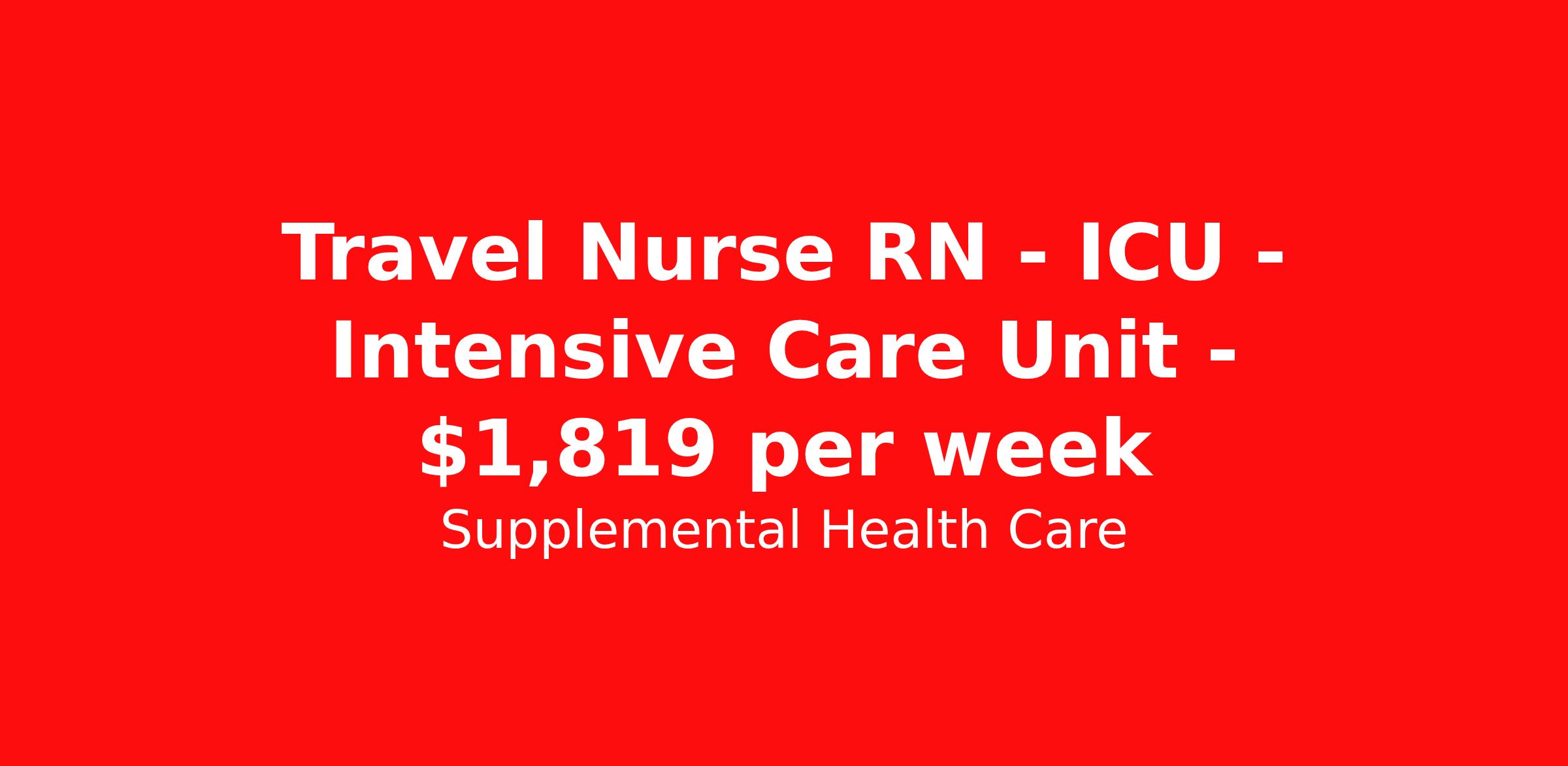 Supplemental Health Care is seeking a travel nurse RN ICU - Intensive Care Unit for a travel nursing job in Montgomery, Alabama. Job Description & Requirements Specialty: ICU - Intensive Care Unit Discipline: RN Start Date: ASAP Duration: 13 weeks 36 hours per week Shift: 12 hours, days Employment Type: Travel Job Description: Supplemental Health Care is hiring ICU Registered Nurses for contract assignments at partnering hospitals in Montgomery, Alabama. Whether you’re looking to travel or stay local, we’re committed to helping Intensive Care Unit RNs find the right fit with top hospitals across the country. With more than 40 years of experience in healthcare staffing, Supplemental Health Care offers reliable support, competitive pay, and great benefits every step of the way. Qualifications: Current RN License in Alabama or Compact RN License where applicable American Heart Association BLS ACLS 1-2 years of recent ICU nursing experience ICU RN Contract Details: $1,656 - $1,819 per week* 13-week contract with possibility to extend AM shift available Key Responsibilities: Deliver high-acuity care to critically ill or unstable patients requiring advanced monitoring and life-support interventions. Monitor and interpret vital signs, cardiac rhythms, and hemodynamic data; respond rapidly to changes in patient condition. Administer medications, including titratable drips, sedation, and emergency drugs, per ICU protocols. Manage ventilators, infusion pumps, central lines, arterial lines, and other critical-care equipment. Collaborate with physicians and the interdisciplinary team to update and execute patient care plans. Provide education and emotional support to patients and families during complex or high-stress situations. Document all assessments, interventions, and outcomes in accordance with hospital and regulatory standards. Apply today to get started with this ICU RN contract opportunity, or talk to our team about the full range of Registered Nurse opportunities available. What We Offer: Full medical, dental, vision, life, and even pet insurance! Round the clock support. No matter where you are or what time it is, Supplemental Health Care is standing by. SHC's Share the Care referral program is the most dynamic, profitable referral program in the industry. 401(k) Retirement Savings Program with a wide range of investment options. Discounted and free online access to CEU courses through Supplemental University. Supplemental Health Care is an Equal Opportunity Employer. All candidates, including veterans and those with disabilities, are encouraged to apply. SHC will consider for employment qualified applicants with criminal histories in a manner consistent with the requirements of applicable local, state, or federal law. To learn more, visit www.shccares.com/eeo Supplemental Health Care Job ID 1472294. Pay package is based on 12 hour shifts and 36 hours per week (subject to confirmation) with tax-free stipend amount to be determined. Posted job title: Travel ICU Registered Nurse About Supplemental Health Care At Supplemental Health Care, a simple belief in the power of caring guides a unique commitment to world-class service in healthcare staffing. For 40 years, we’ve supported talented professionals pursuing their life calling in hospitals, schools, home health, corrections, behavioral health, and other settings. At SHC, we inspire vital connections and enrich lives and inspire better outcomes. As recipients of the Best in Staffing Awards for both Client and Talent, Supplemental Health Care is proud to be among only 2% of staffing companies singled out for the distinction based on the real feedback of our employees and the clients we serve. SHC has also earned The Joint Commission’s Gold Seal of Approval and is named among the Largest Health Care Staffing companies in the United States by Staffing Industry Analysts. We are also thrilled to recognize our very own SLP, Dr. Kelly Byrd as the American Staffing Association 2024 National Staffing Employee of the Year and Health Care Sector All-Star. We’re honored to connect Dr. Byrd to employment, share her incredible story, and support her family literacy nonprofit. For everyone that we serve, SHC is the place where caring hearts thrive. Benefits Referral bonus Benefits start day 1 401k retirement plan Continuing Education Discount program Health savings account