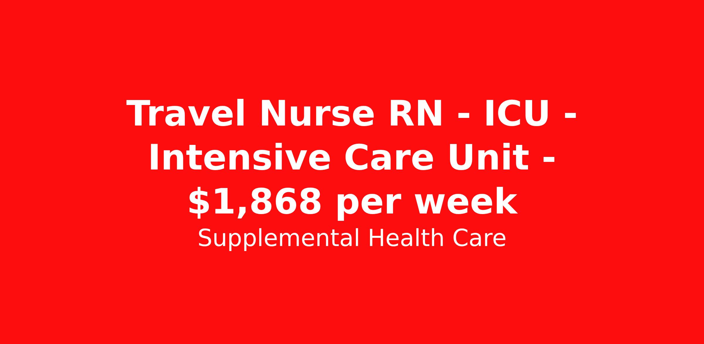 Supplemental Health Care is seeking a travel nurse RN ICU - Intensive Care Unit for a travel nursing job in Birmingham, Alabama. Job Description & Requirements Specialty: ICU - Intensive Care Unit Discipline: RN Start Date: ASAP Duration: 13 weeks 36 hours per week Shift: 12 hours, days Employment Type: Travel Job Description: Supplemental Health Care is hiring ICU Registered Nurses for contract assignments at partnering hospitals in Birmingham, Alabama. Whether you’re looking to travel or stay local, we’re committed to helping Intensive Care Unit RNs find the right fit with top hospitals across the country. With more than 40 years of experience in healthcare staffing, Supplemental Health Care offers reliable support, competitive pay, and great benefits every step of the way. Qualifications: Current RN License in Alabama or Compact RN License where applicable American Heart Association BLS ACLS 1-2 years of recent ICU nursing experience ICU RN Contract Details: $1,715 - $1,868 per week* 13-week contract with possibility to extend AM shift available Key Responsibilities: Deliver high-acuity care to critically ill or unstable patients requiring advanced monitoring and life-support interventions. Monitor and interpret vital signs, cardiac rhythms, and hemodynamic data; respond rapidly to changes in patient condition. Administer medications, including titratable drips, sedation, and emergency drugs, per ICU protocols. Manage ventilators, infusion pumps, central lines, arterial lines, and other critical-care equipment. Collaborate with physicians and the interdisciplinary team to update and execute patient care plans. Provide education and emotional support to patients and families during complex or high-stress situations. Document all assessments, interventions, and outcomes in accordance with hospital and regulatory standards. Apply today to get started with this ICU RN contract opportunity, or talk to our team about the full range of Registered Nurse opportunities available. What We Offer: Full medical, dental, vision, life, and even pet insurance! Round the clock support. No matter where you are or what time it is, Supplemental Health Care is standing by. SHC's Share the Care referral program is the most dynamic, profitable referral program in the industry. 401(k) Retirement Savings Program with a wide range of investment options. Discounted and free online access to CEU courses through Supplemental University. Supplemental Health Care is an Equal Opportunity Employer. All candidates, including veterans and those with disabilities, are encouraged to apply. SHC will consider for employment qualified applicants with criminal histories in a manner consistent with the requirements of applicable local, state, or federal law. To learn more, visit www.shccares.com/eeo Supplemental Health Care Job ID 1469735. Pay package is based on 12 hour shifts and 36 hours per week (subject to confirmation) with tax-free stipend amount to be determined. Posted job title: Travel ICU Registered Nurse About Supplemental Health Care At Supplemental Health Care, a simple belief in the power of caring guides a unique commitment to world-class service in healthcare staffing. For 40 years, we’ve supported talented professionals pursuing their life calling in hospitals, schools, home health, corrections, behavioral health, and other settings. At SHC, we inspire vital connections and enrich lives and inspire better outcomes. As recipients of the Best in Staffing Awards for both Client and Talent, Supplemental Health Care is proud to be among only 2% of staffing companies singled out for the distinction based on the real feedback of our employees and the clients we serve. SHC has also earned The Joint Commission’s Gold Seal of Approval and is named among the Largest Health Care Staffing companies in the United States by Staffing Industry Analysts. We are also thrilled to recognize our very own SLP, Dr. Kelly Byrd as the American Staffing Association 2024 National Staffing Employee of the Year and Health Care Sector All-Star. We’re honored to connect Dr. Byrd to employment, share her incredible story, and support her family literacy nonprofit. For everyone that we serve, SHC is the place where caring hearts thrive. Benefits Referral bonus Benefits start day 1 401k retirement plan Continuing Education Discount program Health savings account
