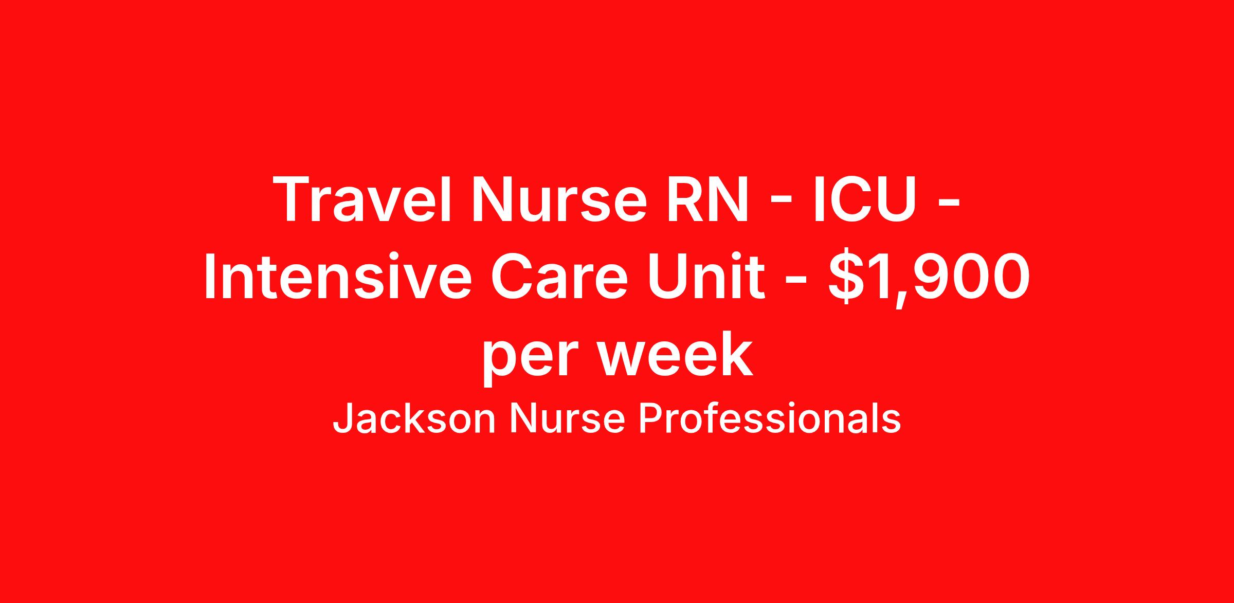 Jackson Nurse Professionals is seeking a travel nurse RN ICU - Intensive Care Unit for a travel nursing job in Cornelius, North Carolina. Job Description & Requirements Specialty: ICU - Intensive Care Unit Discipline: RN Start Date: 03/23/2026 Duration: 13 weeks 36 hours per week Shift: 12 hours, nights Employment Type: Travel About Jackson Nurse Professionals Filling critical needs in patient care, Jackson Nurse Professionals delivers cost-effective travel nurse staffing solutions to over 500 hospitals, outpatient clinics, and home health clients nationwide. Awarded Best of Staffing - Talent and Client 2024, and rated as a Top Workplace 2023 by the Orlando Sentinel, Jackson Nurse Professionals goes the extra mile to provide travel nurses the career they deserve, while providing clients with a large range of highly skilled nurses to fill short, long-term, and temporary assignments. As a member of Jackson Healthcare’s family of award-winning staffing companies, we’re part of a growing community that’s impacting 10 million patients nationwide. Join our mission to improve the delivery of patient care, and the lives of everyone we touch.
