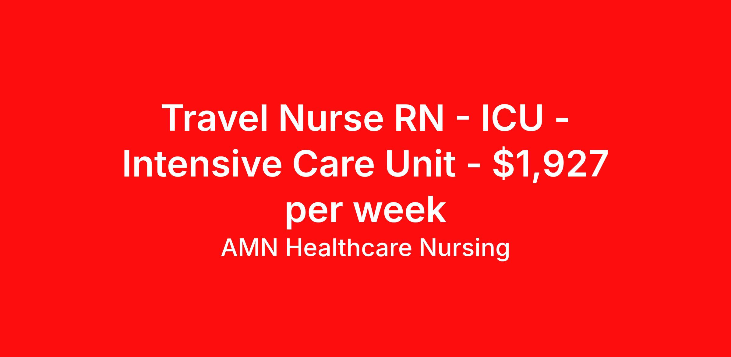 AMN Healthcare Nursing is seeking a travel nurse RN ICU - Intensive Care Unit for a travel nursing job in WOONSOCKET, Rhode Island. Job Description & Requirements Specialty: ICU - Intensive Care Unit Discipline: RN Start Date: 04/26/2026 Duration: 8 weeks 36 hours per week Shift: 12 hours, nights Employment Type: Travel Job Description & Requirements Registered Nurse – Intensive Care - ICU - Travel - (ICU RN) StartDate: 4/26/2026 Available Shifts: 12 N Pay Rate: $1869.00 - $1985.00 This position presents an opportunity to join an elite team of passionate physicians and nurses within the Intensive Care Unit (ICU). You’ll find a challenging and rewarding environment where patient care is firmly rooted in compassion, innovation, and a drive for great outcomes. This highly esteemed facility welcomes creative, energetic caregivers. Required Qualifications Registered Nurse, ICU Experience: 1 year Licenses: RN(Compact Accepted) Certifications: BLS(Copy Needed); ACLS(Copy Needed) SSN Required DOB Required References: 2 References in entire work history 2 References Minimum of 2 COVID-19 vaccines booster required, or declination completed Job Benefits At AMN Healthcare we take care of our travelers! We offer: Competitive pay rates Free, quality, private housing Medical, Dental, Vision 401(k) and Flex Spending Life Insurance Accident and Short-term Disability Coverage Free Continuing Education Refer a friend and earn extra cash! About the Company At AMN Healthcare, we strive to be recognized as the most trusted, innovative, and influential force in helping healthcare organizations provide quality patient care that continually evolves to make healthcare more human, more effective, and more achievable. Critical care nurse, CCU RN, intensive care nurse, ICU nurse, ICU nursing, ICU, intensive care, critical care, registered nurse, RN, R.N., nurse, nursing, healthcare, health care, patient care American Mobile Healthcare Job ID 3467258. Pay package is based on 12 hour shifts and 36 hours per week (subject to confirmation) with tax-free stipend amount to be determined. Posted job title: Registered Nurse – Intensive Care - ICU - Travel - (ICU RN) About AMN Healthcare Nursing AMN Healthcare is a leader in Nurse staffing. Our relationships with numerous healthcare facilities - including hospitals, home health agencies, and long-term care facilities - enable us to offer the most current travel nurse, local staffing, rapid response and crisis nurse jobs nationwide. We''re committed to finding you the best nursing job to fit your career goals. AMN Healthcare is an EEO/AA/Disability/Protected Veteran Employer. We encourage minority and female applicants to apply. Benefits Company provided housing options Medical benefits Dental benefits Continuing Education