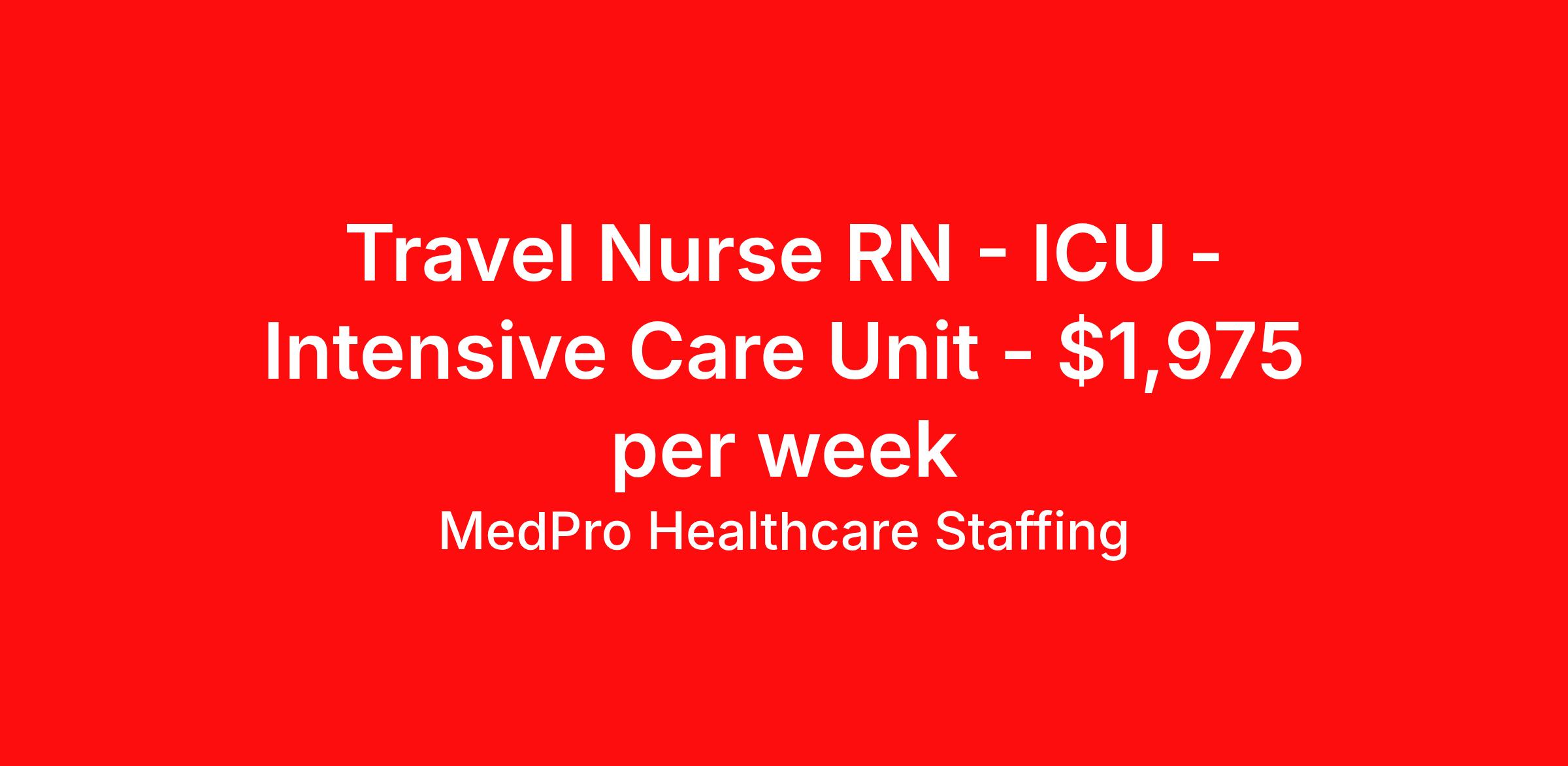 MedPro Healthcare Staffing is seeking a travel nurse RN ICU - Intensive Care Unit for a travel nursing job in Christiansburg, Virginia. Job Description & Requirements Specialty: ICU - Intensive Care Unit Discipline: RN Start Date: 04/06/2026 Duration: 13 weeks 36 hours per week Shift: 12 hours, nights Employment Type: Travel MedPro Healthcare Staffing , a Joint Commission-certified staffing agency, is seeking a quality ICU/CCU Registered Nurse for a travel assignment with one of our top healthcare clients. Requirements Active RN License Degree from accredited nursing program BLS & ACLS Certification Eighteen months of recent experience in an Acute Care ICU setting Other requirements to be determined by our client facility Benefits Weekly pay and direct deposit Full coverage of all credentialing fees Private housing or housing allowance Group Health insurance for you and your family Company-paid life and disability insurance Travel reimbursement 401(k) matching Unlimited Referral Bonuses up to $1,000 Duties Responsibilities ICU/Critical Care Nurse (RN) possesses the skills needed to manage the care of adult patients experiencing life-threatening problems requiring complex assessment, high intensity therapies, and interventions. Provide patient care as well as education and support to the patient's family. Ensure proper functioning of life support equipment such as ventilators and feeding tubes. Observe the patient's heart rate, blood pressure and respiration for signs of distress. Administer medication, IVs, and insert catheters as needed. Meticulous documentation of medication administration. Assist in emergency nursing procedures necessary for prompt control of changes in patient’s physical condition. Perform cardiopulmonary resuscitation accurately and effectively. About Agency MedPro Healthcare Staffing is a Joint Commission certified provider of contract staffing services. Since 1983, we have placed nursing and allied travelers in top healthcare facilities nationwide. Join us today for your very own MedPro Experience®. If qualified and interested, please call for immediate consideration. MedPro Staffing is an Equal Opportunity Employer. All applicants will be considered for employment without attention to race, color, religion, national origin, age, sex, disability, marital status or veteran status. Key Words: Intensive Care Unit, Nurse, Registered Nurse, RN-ICU, Critical Care Unit, Critical Care Nurse, Intensive Care Nurse, RN-CCU, Travel Nurse, Agency Nurse, Contract Nurse, Travel Contract, ACLS, EKG, RN, Registered Nurse, ICU, CCU, RN-ICU, RN-CCU, MICU, SICU, Advanced Life Support, CPR, BLS, Travel Nursing *Weekly payment estimates are intended for informational purposes only and include a gross estimate of hourly wages and reimbursements for meal, incidental, and housing expenses. Your recruiter will confirm your eligibility and provide additional details. MedPro Job ID a0Fcx00000I4ISEEA3. Pay package is based on 12 hour shifts and 36 hours per week (subject to confirmation) with tax-free stipend amount to be determined. Posted job title: ICU/CCU Registered Nurse Nursing: ICU - Intensive Care. About MedPro Healthcare Staffing At MedPro Healthcare Staffing , we believe no one cares more for caregivers than we do. Our mission is simple: you focus on your patients, and we’ll take care of the rest. As a Joint Commission-certified leader in temporary and contract healthcare staffing since 1983, MedPro has proudly connected nursing and allied travelers with top healthcare facilities across the nation. With thousands of job opportunities available nationwide, we make it easy to find assignments that align with your goals and lifestyle. Our on-staff clinical support team—alongside a compassionate group of experienced recruiters—provides hands-on guidance every step of the way. From Day 1 medical benefits and a 401(k) plan to personalized career support, we’re committed to ensuring every professional we serve feels valued, cared for, and empowered to succeed. Guided by a CEO who is a Registered Nurse, MedPro is built on a foundation of clinical insight and genuine compassion for the caregiving community. Through The MedPro Experience® , we deliver travel assignments that are rewarding, memorable, and designed to help you DREAM big, EXPLORE often, and ACHIEVE greatness. Benefits Day 1 medical, dental, and vision benefits for you and your family Weekly pay and direct deposit Unlimited Referral Bonuses starting at $500 On Staff Clinical Support Team Access to nationwide travel assignments MPX Mobile app -24/7 real-time access to jobs, credentials, assignment details, and more Full coverage of all credentialing fees Private housing or housing allowance Tax Free Per Diems, Housing Stipends and Travel Reimbursements Company-paid life and disability insurance Travel reimbursement 401(k) matching Benefits Weekly pay Referral bonus Employee assistance programs