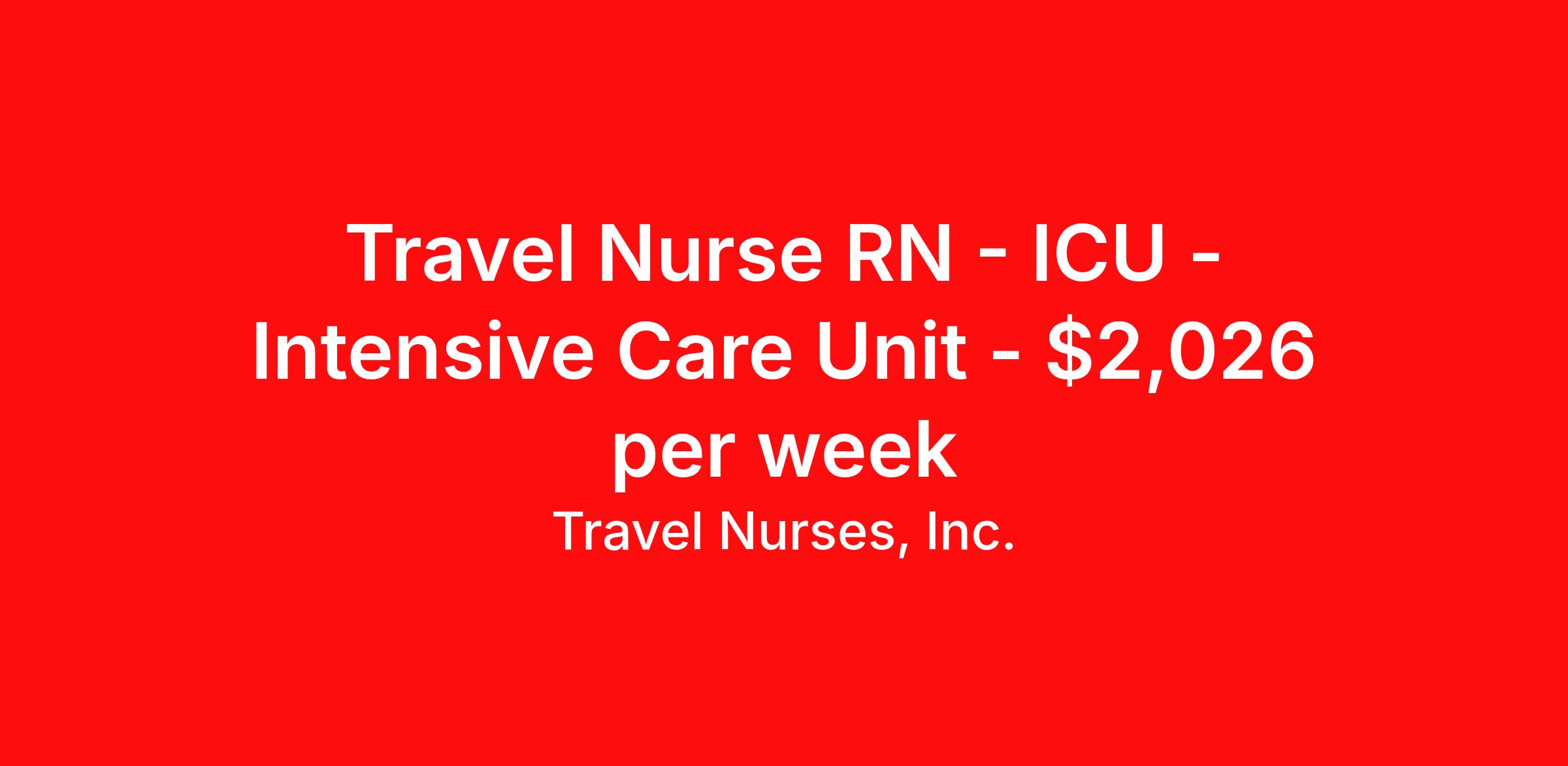 Travel Nurses, Inc. is seeking a travel nurse RN ICU - Intensive Care Unit for a travel nursing job in Fayetteville, North Carolina. Job Description & Requirements Specialty: ICU - Intensive Care Unit Discipline: RN Start Date: 04/06/2026 Duration: 13 weeks 36 hours per week Shift: 12 hours Employment Type: Travel Travel Nurses, Inc. Job ID 304549. Pay package is based on 12 hour shifts and 36 hours per week (subject to confirmation) with tax-free stipend amount to be determined. Posted job title: ICU Registered Nurse About Travel Nurses, Inc. Travel Nurses, Inc. is a leading healthcare staffing agency that provides healthcare professionals with opportunities to work across the country. Founded by nurses in 1988, TNI has more than 30 years of experience in the industry. The agency initially focused on staffing operating room settings in the MidSouth. However, this quickly evolved to encompass all nursing specialties and allied health fields nationwide. At the heart of our mission is a profound respect for nurses, whom we consider the cornerstone of healthcare. This acknowledgment extends beyond the nursing profession alone. Travel Nurses, Inc. now proudly embraces a wide array of healthcare professionals, recognizing their crucial roles in our collective mission. Travel Nurses, Inc. is dedicated to providing comprehensive support and opportunities that will help facilitate complete career mobility in the healthcare field. Our commitment to transparency ensures that all professionals, not just nurses, can confidently accept any assignment without financial uncertainties. We prioritize our professionals’ well-being with comprehensive benefits packages, including day-one healthcare coverage, competitive salaries, bonuses and incentives. This underscores our unwavering commitment to offering the best possible rewards and support for all the professionals we serve. Benefits Weekly pay Continuing Education 401k retirement plan Wellness and fitness programs Mileage reimbursement Referral bonus Employee assistance programs Medical benefits Dental benefits Vision benefits Benefits start day 1 License and certification reimbursement Life insurance Retention bonus