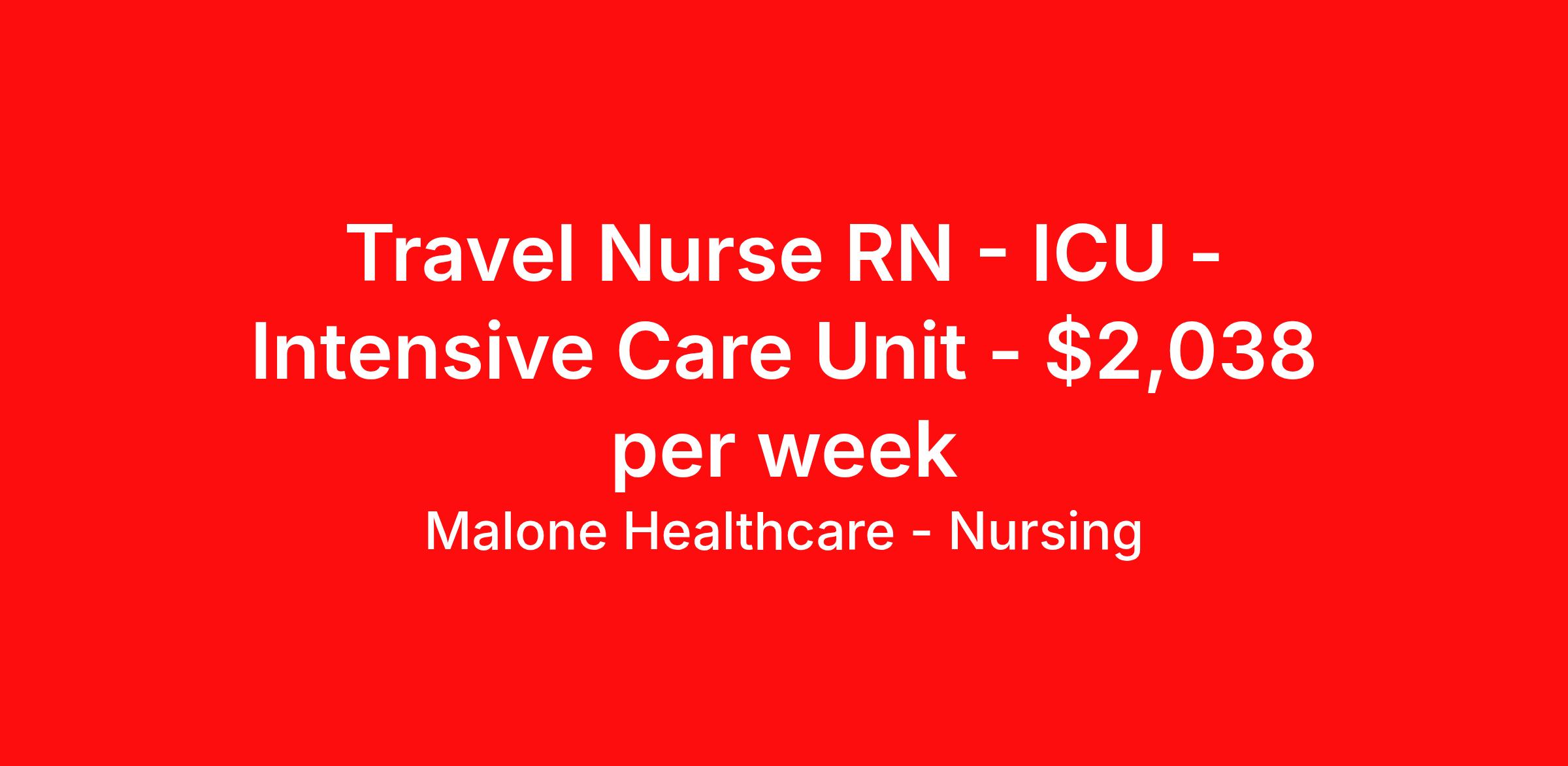 Malone Healthcare - Nursing is seeking a travel nurse RN ICU - Intensive Care Unit for a travel nursing job in Roanoke, Virginia. Job Description & Requirements Specialty: ICU - Intensive Care Unit Discipline: RN Start Date: 03/31/2026 Duration: 13 weeks 36 hours per week Shift: 12 hours, days Employment Type: Travel RN – ICU/PCU Float (Day Shift 3x12, 06:45–19:15) Position: ICU/PCU Float RN (Must be comfortable in ALL ICU & PCU units) Shift: 3x12 Days | 6:45a–7:15p Charting: EPIC required Scheduling & Requirements Floating reassessed every 4 hours (may float 2–3 times per shift) Weekend: Every other weekend OR 6 weekend shifts in 6-week block Holiday: 1 per 13-week contract First-time travelers accepted Locals accepted (per radius rule guidelines) Pending license accepted (must meet VA/Compact requirements) All RTO must be included at submission Facility may call off 1 shift per 2 weeks Required Certifications ACLS BLS NIHSS Required Clinical Skills ICU experience (Large Level 1/2 facility required; 2 years preferred) IV therapy: A-lines, central/PICC care, blood products Ventilator care, BiPAP/CPAP Cardiac monitoring & dysrhythmia management Titration of vasoactive drips, IV sedation, emergency meds IV insulin protocols Surgical wound/drain/wound vac care Unit Ratios ICU: 1:2 PCU: 1:5 About Malone Healthcare - Nursing With a commitment to providing a higher standard of service and experience in patient care, Malone Healthcare places expert nurses and allied health professionals in rewarding careers throughout the United States. As a leading healthcare staffing agency, Malone’s focus on compliance and integrity translates to a seamless experience for our team members and partner facilities. When you work with Malone Healthcare, you can rely on over 50 years of proven experience placing exceptional professionals in quality healthcare settings. Benefits Weekly pay Holiday Pay Guaranteed Hours Continuing Education 401k retirement plan Pet insurance Referral bonus Medical benefits Dental benefits Vision benefits License and certification reimbursement Life insurance