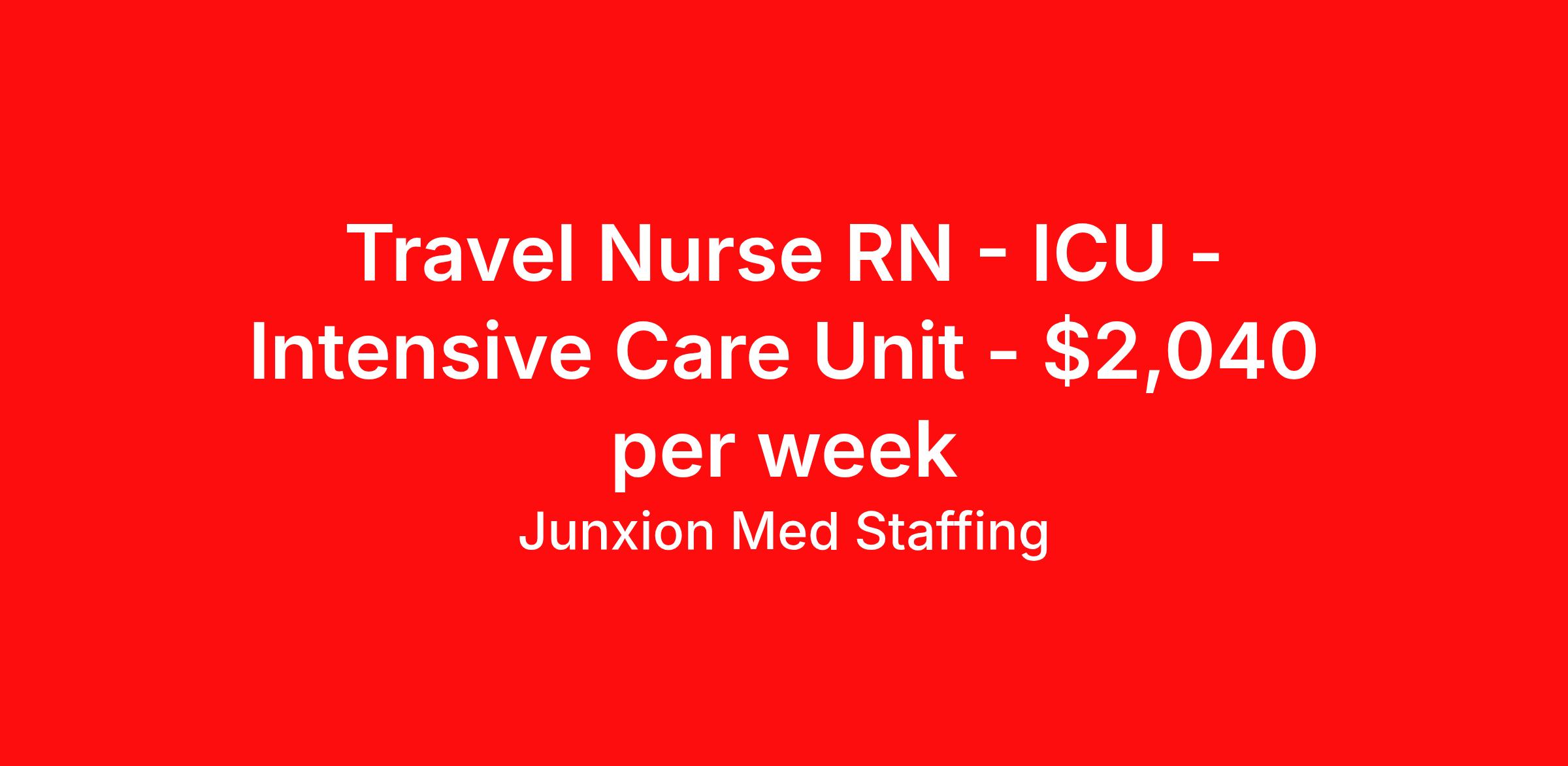 Junxion Med Staffing is seeking a travel nurse RN ICU - Intensive Care Unit for a travel nursing job in Franklin, Wisconsin. Job Description & Requirements Specialty: ICU - Intensive Care Unit Discipline: RN Start Date: 04/12/2026 Duration: 13 weeks 36 hours per week Shift: 12 hours, days Employment Type: Travel Summary: Junxion Med Staffing is looking for a ICU RN to take an assignment in Franklin, Wisconsin. This assignment lasts 13 WEEKS and is scheduled to start on April 12, 2026. If you don't like the start date, pay, or shift, then let’s talk. Give us a call opt 1 Job Details: Shift: 12H Days Total Weekly Hours: 36 Certifications: BLS, Nursys, License/Certificate Verification Trauma Level: Benefits: Day 1 Insurance Additional bonus potential for every contract Additional vacation incentives Medical insurance with no more than $175 monthly premium for employee Employee Assistance Program (EAP) Referral bonus up to $1,000 401K and access to financial advisors for financial wellness and education A dedicated recruiter and support team that will help you every step of the way to sure you start on time and have an exceptional experience An agency ran by a traveler for travelers Click here for licensing requirements About the Company: Junxion Med Staffing is an award-winning healthcare staffing company with a mission to provide quality healthcare to our communities. Apply today to speak with a recruiter! Awards: RNVIP- Top 10 Travel Nursing Agencies of 2024 BluePipes – The Best Travel Nursing Companies 2023 *Estimated weekly pay includes projected hourly wages and weekly meal and lodging per diems for eligible clinicians based on nationally published GSA rates. Actual weekly pay and per diems may differ from the amount shown and may be subject to change during an assignment. For all employees and employee applicants, Junxion Med Staffing is an Equal Employment Opportunity ("EEO") Employer, including Disability/Vets, and welcomes all to apply. Junxion Med Staffing Job ID 1359976. Pay package is based on 12 hour shifts and 36 hours per week (subject to confirmation) with tax-free stipend amount to be determined. About Junxion Med Staffing Junxion Med Staffing was founded by a former healthcare traveler who understands the challenges healthcare professionals face - because we’ve been there. We specialize in placing travel nurses, allied health professionals, physicians, physician assistants, and nurse practitioners in both short-term and permanent roles across a wide range of specialties. Whether you're looking for a travel contract or a long-term fit, we work to ensure the right match between each healthcare professional and facility. At Junxion, we keep it simple: ● Transparent communication. No surprises, no hidden details, just honest conversations so you always know what to expect. ● Dedicated support. From job search to contract negotiations and throughout your assignment, you’ll have a recruiter who’s with you every step of the way. ● Competitive pay and benefits. We advocate for you to be fairly compensated and supported in your goals. ● A focus on your success. When healthcare professionals feel valued and empowered, patient care improves and that’s what it’s all about. You’re not just a number here. You’re part of a team that actually cares. Let’s find your next great opportunity together. Benefits Weekly pay Referral bonus Dental benefits Vision benefits 401k retirement plan Medical benefits Mileage reimbursement