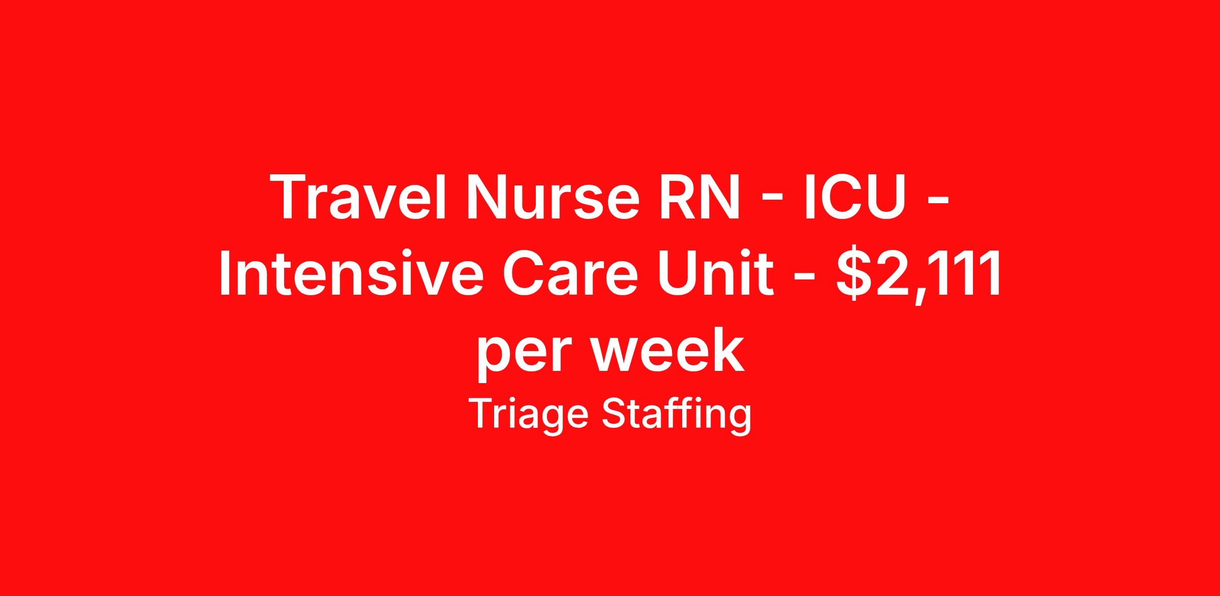 Travel Nurse RN - ICU - Intensive Care Unit - $2,111 per week
