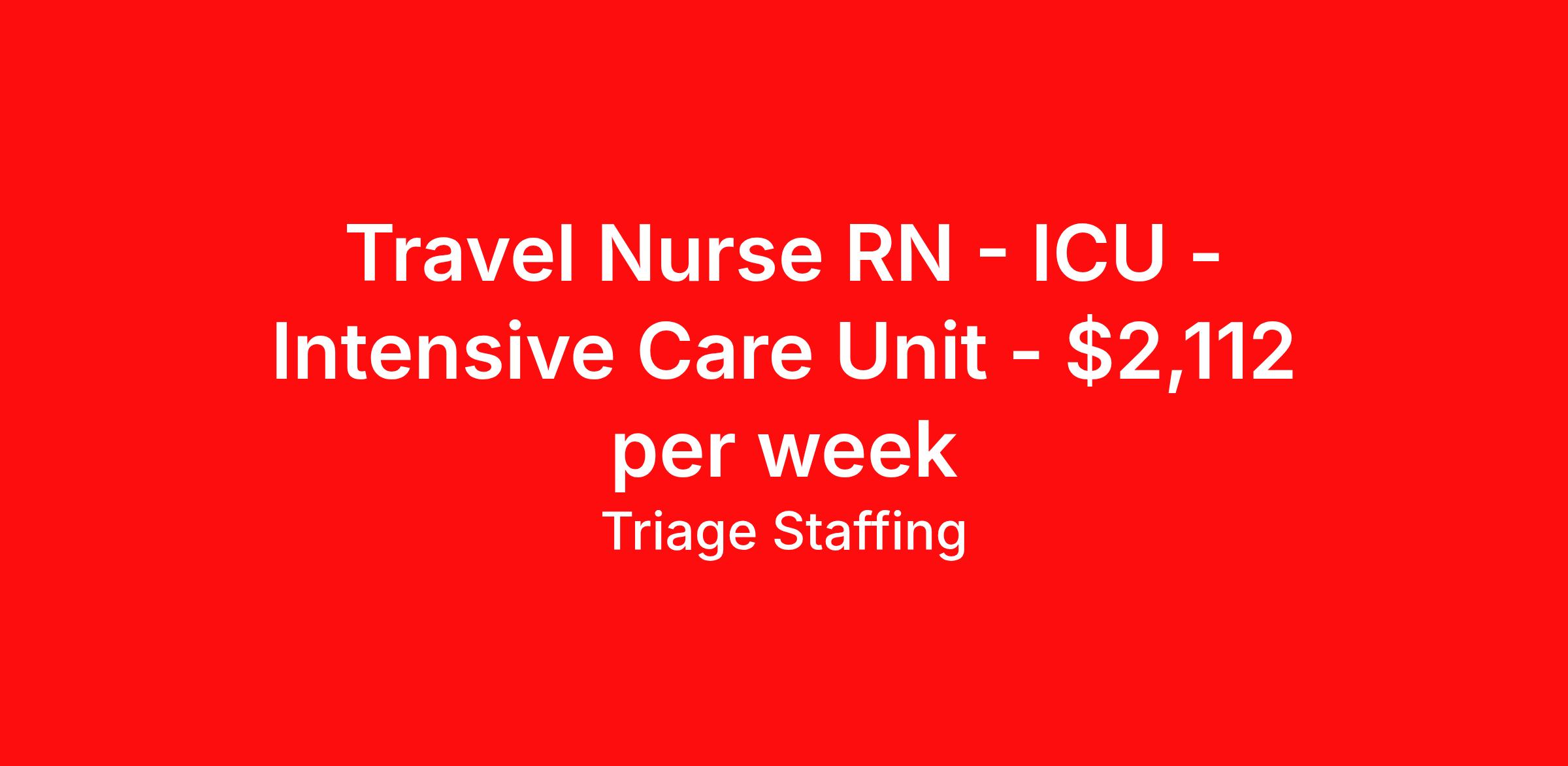 Travel Nurse RN - ICU - Intensive Care Unit - $2,112 per week