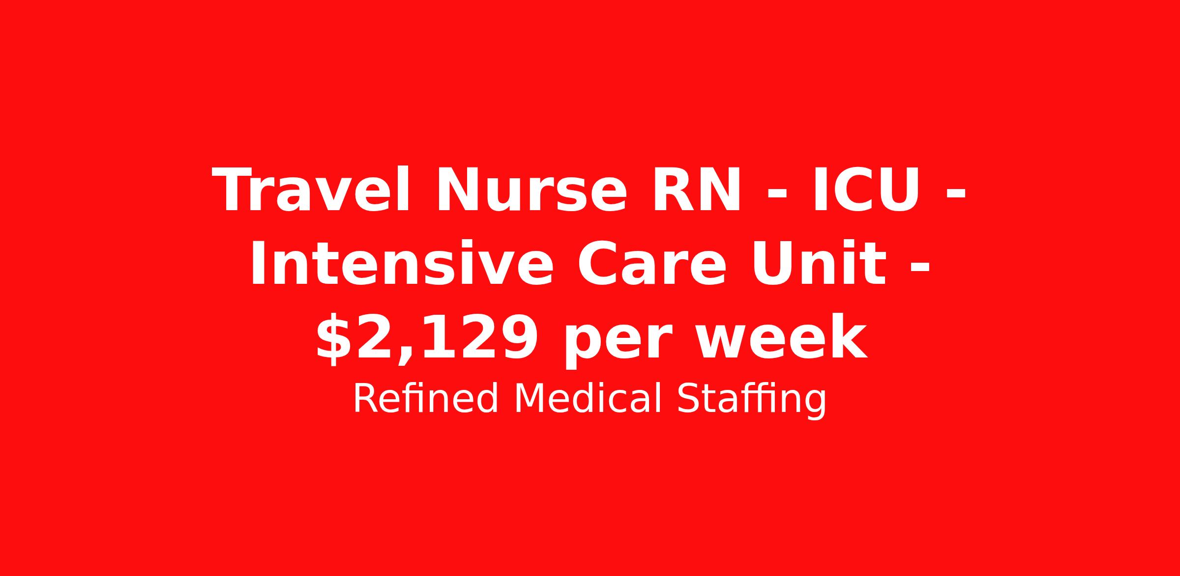 Refined Medical Staffing is seeking a travel nurse RN ICU - Intensive Care Unit for a travel nursing job in Indianapolis, Indiana. Job Description & Requirements Specialty: ICU - Intensive Care Unit Discipline: RN Start Date: 04/12/2026 Duration: 13 weeks 36 hours per week Shift: 12 hours, nights Employment Type: Travel Refined Medical Staffing Job ID ASC-42388. Pay package is based on 12 hour shifts and 36 hours per week (subject to confirmation) with tax-free stipend amount to be determined. About Refined Medical Staffing Founded in 2018, Refined Medical Staffing’s leadership team emphasizes our commitment to partnership, communication and proactive service in every aspect of our daily operations. Our leaderships’ decades of industry experience paired with our engaging and transparent staff create a team unlike any other. We are committed to empowering Healthcare Professionals with the skills and knowledge they need to further their careers while making the travel experience as stress-free and enjoyable as possible. We understand that you are on the front line and there for all of us let us, let Refined be there for you. Benefits Benefits start day 1 License and certification reimbursement Life insurance Weekly pay Continuing Education Referral bonus Medical benefits Holiday Pay Mileage reimbursement Dental benefits Guaranteed Hours Vision benefits
