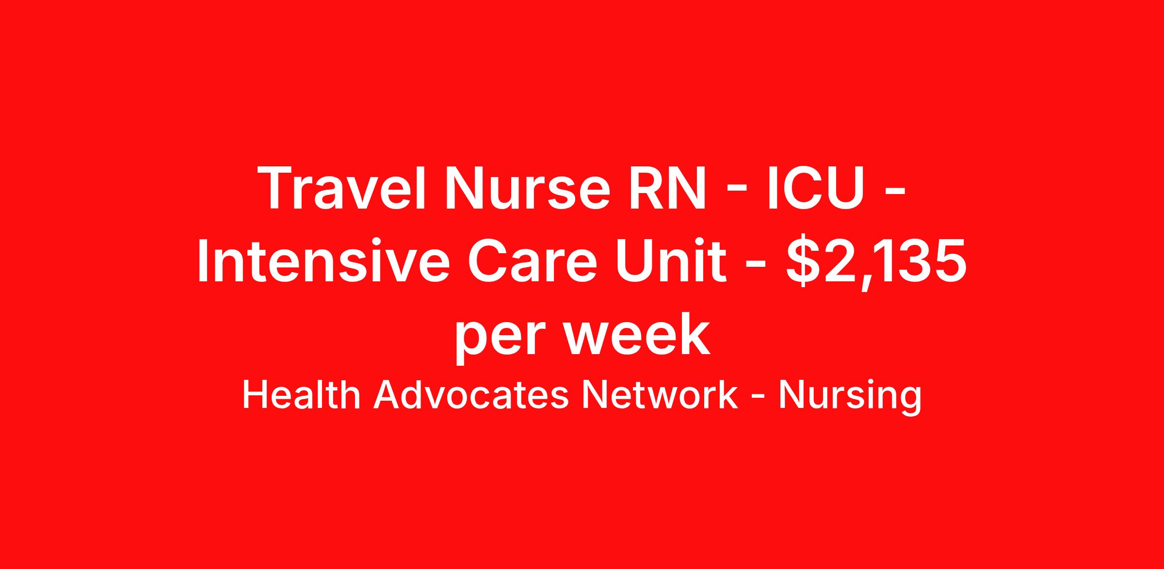 Health Advocates Network - Nursing is seeking a travel nurse RN ICU - Intensive Care Unit for a travel nursing job in Deming, New Mexico. Job Description & Requirements Specialty: ICU - Intensive Care Unit Discipline: RN Start Date: ASAP Duration: 12 weeks 36 hours per week Shift: 12 hours, nights Employment Type: Travel HANStaff Job ID 514618. Pay package is based on 12 hour shifts and 36 hours per week (subject to confirmation) with tax-free stipend amount to be determined. Posted job title: RN - ICU About Health Advocates Network - Nursing Health Advocates Network was founded on the basis of a shared aspiration, to improve the way healthcare staffing is done. We are a company established and led by nurses. Our flexible approach enables us to develop solutions customized to your specific needs. From short- and long-term travel contracts to local and per diem assignments and more, we are here to get you to your next adventure! By solving challenges, providing the best placements, and advocating for you, we stand to help you thrive and pave the path forward in your career. Click on the videos below to learn more about our values!
