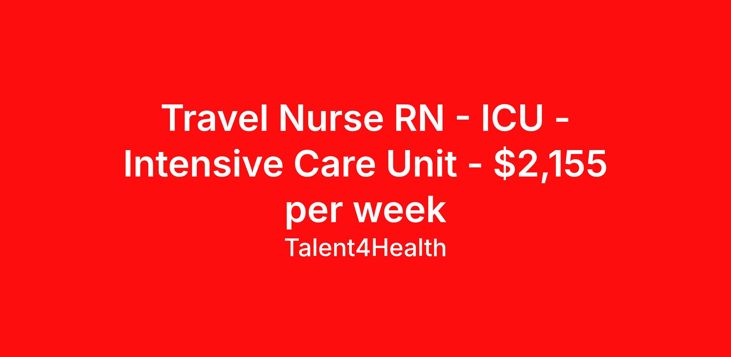 Travel Nurse RN - ICU - Intensive Care Unit - $2,155 per week