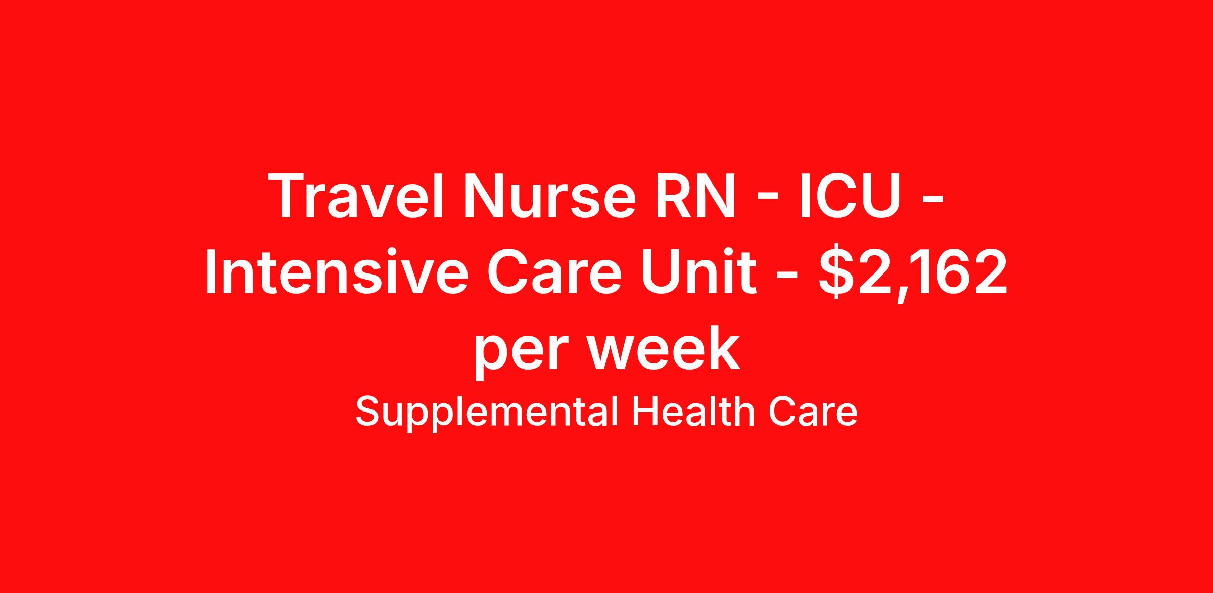 Supplemental Health Care is seeking a travel nurse RN ICU - Intensive Care Unit for a travel nursing job in Washington, District of Columbia. Job Description & Requirements Specialty: ICU - Intensive Care Unit Discipline: RN Start Date: ASAP Duration: 13 weeks 36 hours per week Shift: 12 hours, days Employment Type: Travel Job Description: Supplemental Health Care is hiring experienced travel ICU RNs for travel contracts in the PACU unit at a hospital in Washington, DC. With over 40 years as a nationally recognized staffing partner, we connect healthcare professionals with rewarding travel opportunities that match their skills and career goals. Qualifications: Active Washington, DC RN License Required certifications: BLS, ACLS, PALS, Cerner 2 years of recent ICU and PACU experience Pre-op experience is preferred Commitment to high-quality patient care Travel Critical Care - Icu Registered Nurse Contract Details: $1,944 - $2,162 per week* 13-week full-time travel contract with the possibility to extend 12 hour days | 36 hrs/wk Unit: PACU (ICU experience required) Supplemental Health Care is one of the nation’s top travel nursing agencies, trusted by healthcare professionals for connecting them with competitive pay, comprehensive benefits, and assignments that match their skills and career goals. We partner with leading hospitals and healthcare systems nationwide, offering award-winning support and a clinician-first approach that helps travel nurses build the career and lifestyle they want. Don’t wait, apply now for immediate consideration and let us help you take the next step in your travel nursing career. What We Offer: Full medical, dental, vision, life, and even pet insurance! Round the clock support. No matter where you are or what time it is, Supplemental Health Care is standing by. SHC's Share the Care referral program is the most dynamic, profitable referral program in the industry. 401(k) Retirement Savings Program with a wide range of investment options. Discounted and free online access to CEU courses through Supplemental University. Please speak with a recruiter for details. All candidates, including veterans and those with disabilities, are encouraged to apply. SHC will consider for employment qualified applicants with criminal histories in a manner consistent with the requirements of applicable local, state, or federal law. To learn more, visit www.shccares.com/eeo Supplemental Health Care Job ID 1472269. Pay package is based on 12 hour shifts and 36 hours per week (subject to confirmation) with tax-free stipend amount to be determined. Posted job title: Travel ICU Registered Nurse About Supplemental Health Care At Supplemental Health Care, a simple belief in the power of caring guides a unique commitment to world-class service in healthcare staffing. For 40 years, we’ve supported talented professionals pursuing their life calling in hospitals, schools, home health, corrections, behavioral health, and other settings. At SHC, we inspire vital connections and enrich lives and inspire better outcomes. As recipients of the Best in Staffing Awards for both Client and Talent, Supplemental Health Care is proud to be among only 2% of staffing companies singled out for the distinction based on the real feedback of our employees and the clients we serve. SHC has also earned The Joint Commission’s Gold Seal of Approval and is named among the Largest Health Care Staffing companies in the United States by Staffing Industry Analysts. We are also thrilled to recognize our very own SLP, Dr. Kelly Byrd as the American Staffing Association 2024 National Staffing Employee of the Year and Health Care Sector All-Star. We’re honored to connect Dr. Byrd to employment, share her incredible story, and support her family literacy nonprofit. For everyone that we serve, SHC is the place where caring hearts thrive. Benefits Referral bonus Benefits start day 1 401k retirement plan Continuing Education Discount program Health savings account