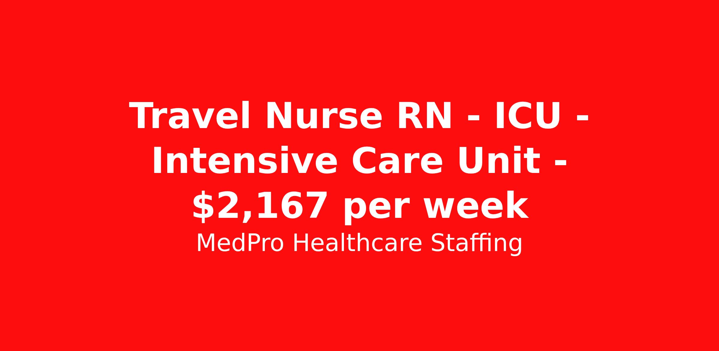 MedPro Healthcare Staffing is seeking a travel nurse RN ICU - Intensive Care Unit for a travel nursing job in Saint Albans, Vermont. Job Description & Requirements Specialty: ICU - Intensive Care Unit Discipline: RN Start Date: 04/06/2026 Duration: 13 weeks 36 hours per week Shift: 12 hours, days Employment Type: Travel MedPro Healthcare Staffing , a Joint Commission-certified staffing agency, is seeking a quality ICU/CCU Registered Nurse for a travel assignment with one of our top healthcare clients. Requirements Active RN License Degree from accredited nursing program BLS & ACLS Certification Eighteen months of recent experience in an Acute Care ICU setting Other requirements to be determined by our client facility Benefits Weekly pay and direct deposit Full coverage of all credentialing fees Private housing or housing allowance Group Health insurance for you and your family Company-paid life and disability insurance Travel reimbursement 401(k) matching Unlimited Referral Bonuses up to $1,000 Duties Responsibilities ICU/Critical Care Nurse (RN) possesses the skills needed to manage the care of adult patients experiencing life-threatening problems requiring complex assessment, high intensity therapies, and interventions. Provide patient care as well as education and support to the patient's family. Ensure proper functioning of life support equipment such as ventilators and feeding tubes. Observe the patient's heart rate, blood pressure and respiration for signs of distress. Administer medication, IVs, and insert catheters as needed. Meticulous documentation of medication administration. Assist in emergency nursing procedures necessary for prompt control of changes in patient’s physical condition. Perform cardiopulmonary resuscitation accurately and effectively. About Agency MedPro Healthcare Staffing is a Joint Commission certified provider of contract staffing services. Since 1983, we have placed nursing and allied travelers in top healthcare facilities nationwide. Join us today for your very own MedPro Experience®. If qualified and interested, please call for immediate consideration. MedPro Staffing is an Equal Opportunity Employer. All applicants will be considered for employment without attention to race, color, religion, national origin, age, sex, disability, marital status or veteran status. Key Words: Intensive Care Unit, Nurse, Registered Nurse, RN-ICU, Critical Care Unit, Critical Care Nurse, Intensive Care Nurse, RN-CCU, Travel Nurse, Agency Nurse, Contract Nurse, Travel Contract, ACLS, EKG, RN, Registered Nurse, ICU, CCU, RN-ICU, RN-CCU, MICU, SICU, Advanced Life Support, CPR, BLS, Travel Nursing *Weekly payment estimates are intended for informational purposes only and include a gross estimate of hourly wages and reimbursements for meal, incidental, and housing expenses. Your recruiter will confirm your eligibility and provide additional details. MedPro Job ID a0Fcx00000B1vynEAB. Pay package is based on 12 hour shifts and 36 hours per week (subject to confirmation) with tax-free stipend amount to be determined. Posted job title: ICU/CCU Registered Nurse Nursing: ICU - Intensive Care. About MedPro Healthcare Staffing At MedPro Healthcare Staffing , we believe no one cares more for caregivers than we do. Our mission is simple: you focus on your patients, and we’ll take care of the rest. As a Joint Commission-certified leader in temporary and contract healthcare staffing since 1983, MedPro has proudly connected nursing and allied travelers with top healthcare facilities across the nation. With thousands of job opportunities available nationwide, we make it easy to find assignments that align with your goals and lifestyle. Our on-staff clinical support team—alongside a compassionate group of experienced recruiters—provides hands-on guidance every step of the way. From Day 1 medical benefits and a 401(k) plan to personalized career support, we’re committed to ensuring every professional we serve feels valued, cared for, and empowered to succeed. Guided by a CEO who is a Registered Nurse, MedPro is built on a foundation of clinical insight and genuine compassion for the caregiving community. Through The MedPro Experience® , we deliver travel assignments that are rewarding, memorable, and designed to help you DREAM big, EXPLORE often, and ACHIEVE greatness. Benefits Day 1 medical, dental, and vision benefits for you and your family Weekly pay and direct deposit Unlimited Referral Bonuses starting at $500 On Staff Clinical Support Team Access to nationwide travel assignments MPX Mobile app -24/7 real-time access to jobs, credentials, assignment details, and more Full coverage of all credentialing fees Private housing or housing allowance Tax Free Per Diems, Housing Stipends and Travel Reimbursements Company-paid life and disability insurance Travel reimbursement 401(k) matching Benefits Weekly pay Referral bonus Employee assistance programs