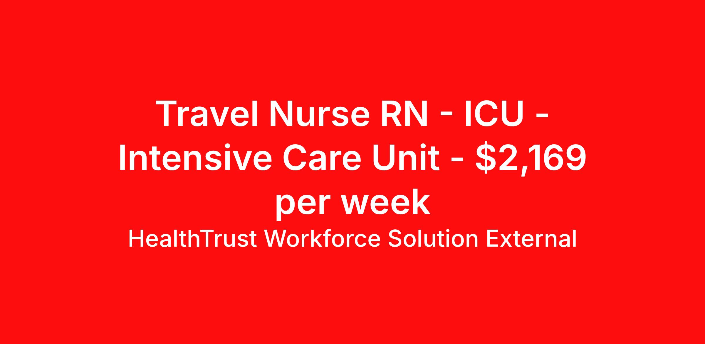 HealthTrust Workforce Solution External is seeking a travel nurse RN ICU - Intensive Care Unit for a travel nursing job in Fort Smith, Arkansas. Job Description & Requirements Specialty: ICU - Intensive Care Unit Discipline: RN Start Date: 04/20/2026 Duration: 13 weeks 36 hours per week Shift: 12 hours, nights Employment Type: Travel Gross Weekly: $ 2,169.25 | Hourly: $25.65 | Weekly Stipends: $ 1,245.85 ⌚ Shift: 3x12 Nights (7p - 730a) Charting: EPIC Requirements & Experience: 2 Years Experience BLS & ACLS (AHA Preferred) 50 miles from facility