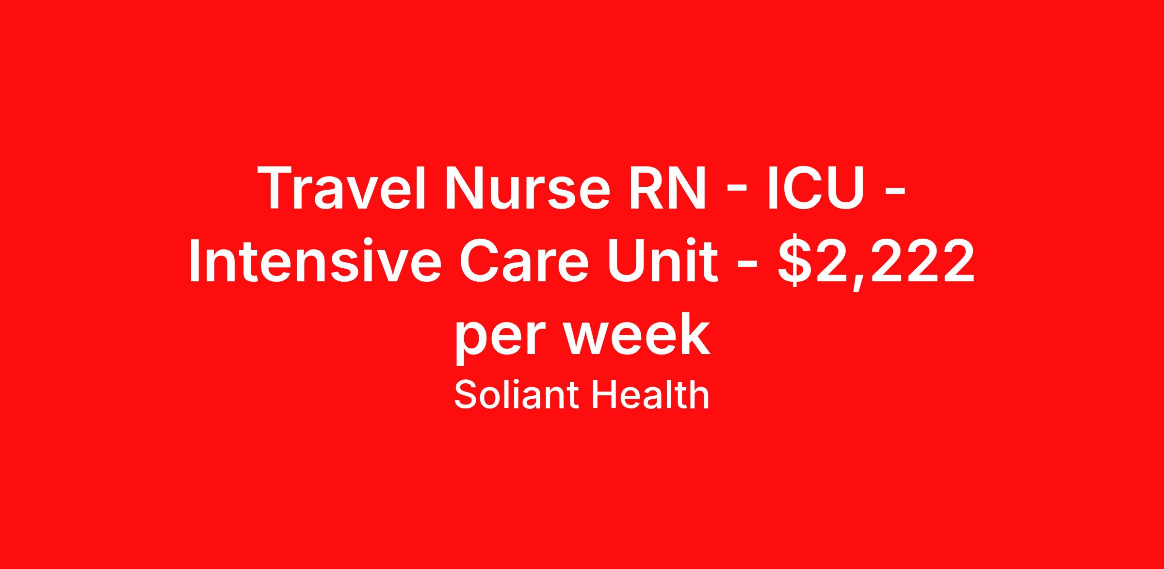 Travel Nurse RN - ICU - Intensive Care Unit - $2,222 per week