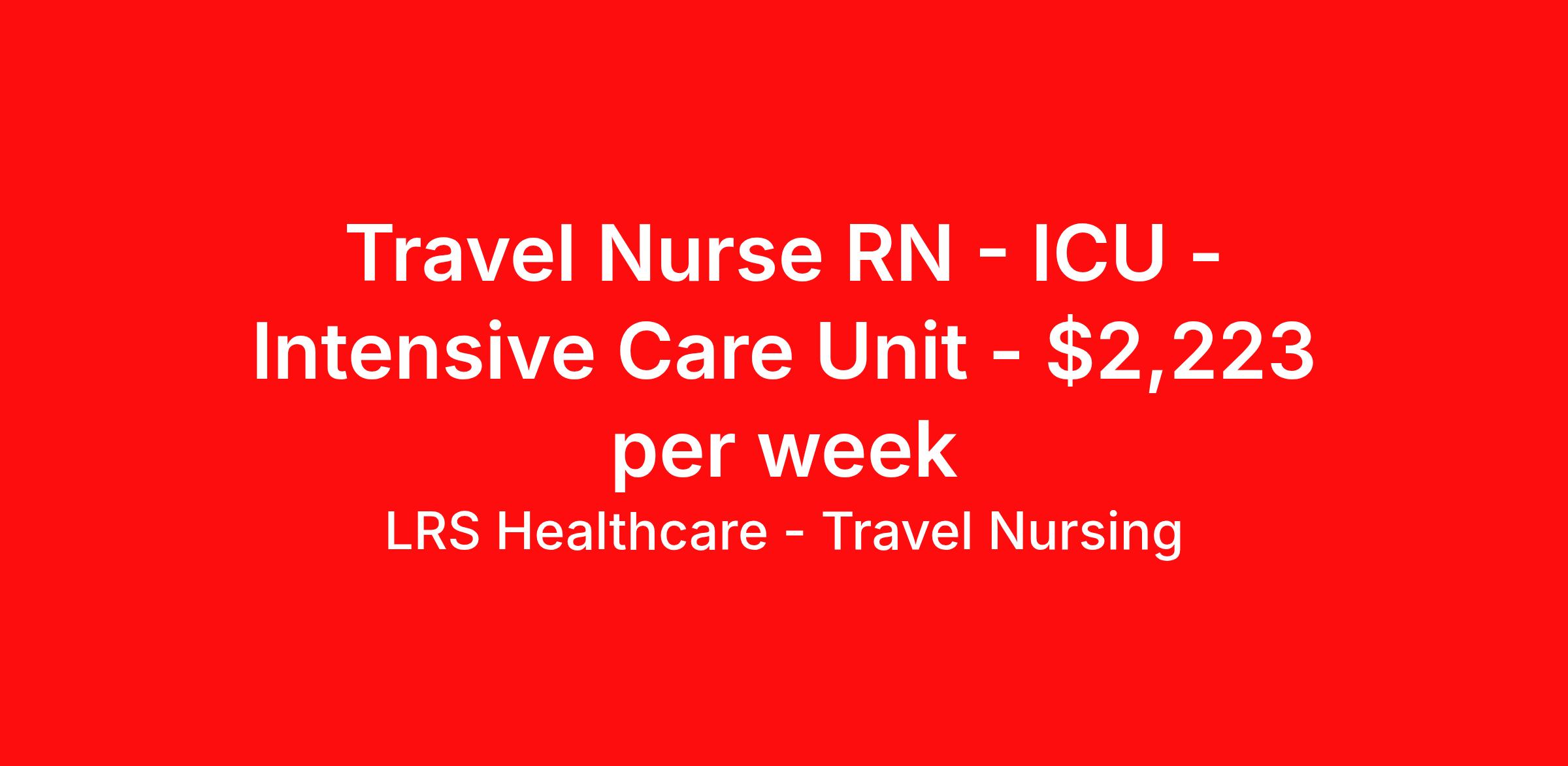 LRS Healthcare - Travel Nursing is seeking a travel nurse RN ICU - Intensive Care Unit for a travel nursing job in Glendale, Arizona. Job Description & Requirements Specialty: ICU - Intensive Care Unit Discipline: RN Start Date: 03/30/2026 Duration: 13 weeks 36 hours per week Shift: 12 hours, nights Employment Type: Travel LRS Healthcare - Travel Nursing Job ID 74-73064. Pay package is based on 12 hour shifts and 36 hours per week (subject to confirmation) with tax-free stipend amount to be determined. About LRS Healthcare - Travel Nursing LRS Healthcare can lend a hand to take your career to new heights and places. As an industry leader in healthcare staffing, we work to connect you with jobs at top of the line facilities in the locations you’ve always wanted to live and visit. LRS is truly a full service medical staffing agency, so we take care of everything from housing and travel expenses to your itinerary, too. We handle it all because we want to be with you throughout your journey – not just your next placement. As a medical staffing agency that fosters long relationships with their employees, we’re determined to help amplify your personal and career growth through placement. We identify both temporary and permanent positions for candidates, and even some temp-to-perm positions that begin as 13-week programs. We have many positions available across the country, so let's discuss what would be a good fit for you! Benefits: Medical, Dental, and Vision Short-Term Disability Long-Term Disability Life Insurance 401(k) Certification & License Reimbursement Refer-a-friend Bonus Program Direct Deposit - Weekly 24-Hour Support Benefits Medical benefits Life insurance 401k retirement plan License and certification reimbursement Referral bonus Weekly pay