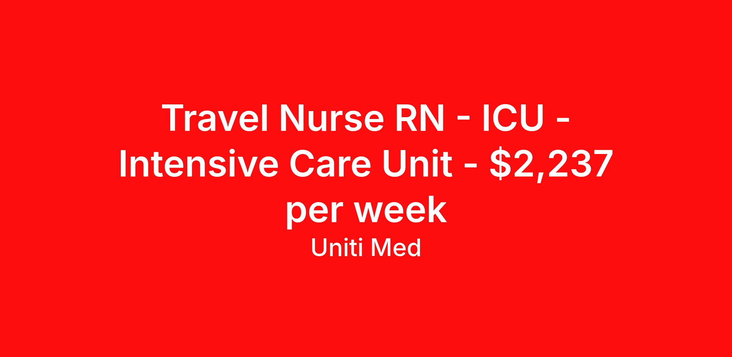 Travel Nurse RN - ICU - Intensive Care Unit - $2,237 per week