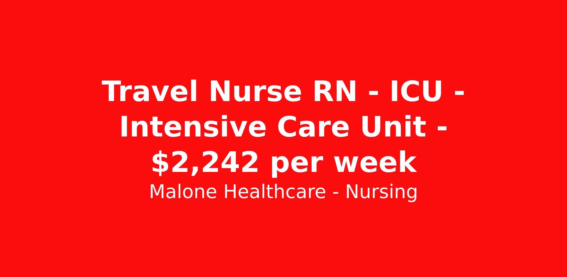 Malone Healthcare - Nursing is seeking a travel nurse RN ICU - Intensive Care Unit for a travel nursing job in Omaha, Nebraska. Job Description & Requirements Specialty: ICU - Intensive Care Unit Discipline: RN Start Date: 03/30/2026 Duration: 11 weeks 36 hours per week Shift: 12 hours, days Employment Type: Travel About Malone Healthcare - Nursing With a commitment to providing a higher standard of service and experience in patient care, Malone Healthcare places expert nurses and allied health professionals in rewarding careers throughout the United States. As a leading healthcare staffing agency, Malone’s focus on compliance and integrity translates to a seamless experience for our team members and partner facilities. When you work with Malone Healthcare, you can rely on over 50 years of proven experience placing exceptional professionals in quality healthcare settings. Benefits Weekly pay Holiday Pay Guaranteed Hours Continuing Education 401k retirement plan Pet insurance Referral bonus Medical benefits Dental benefits Vision benefits License and certification reimbursement Life insurance