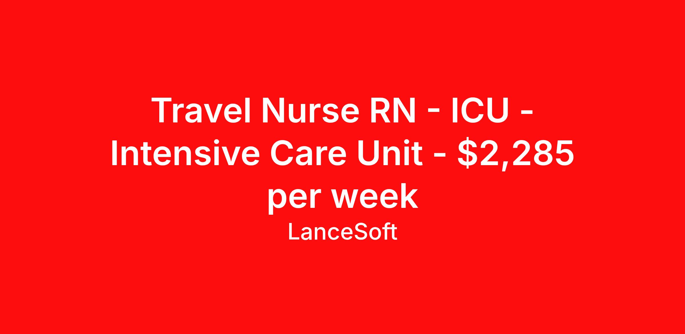 Travel Nurse RN - ICU - Intensive Care Unit - $2,285 per week