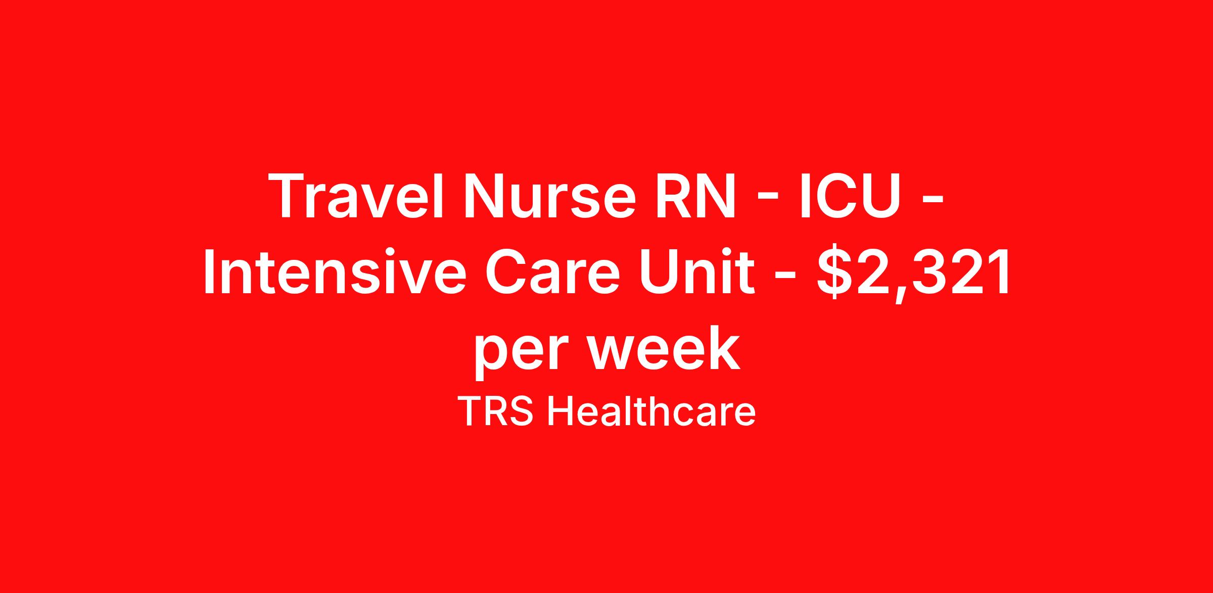 Travel Nurse RN - ICU - Intensive Care Unit - $2,321 per week