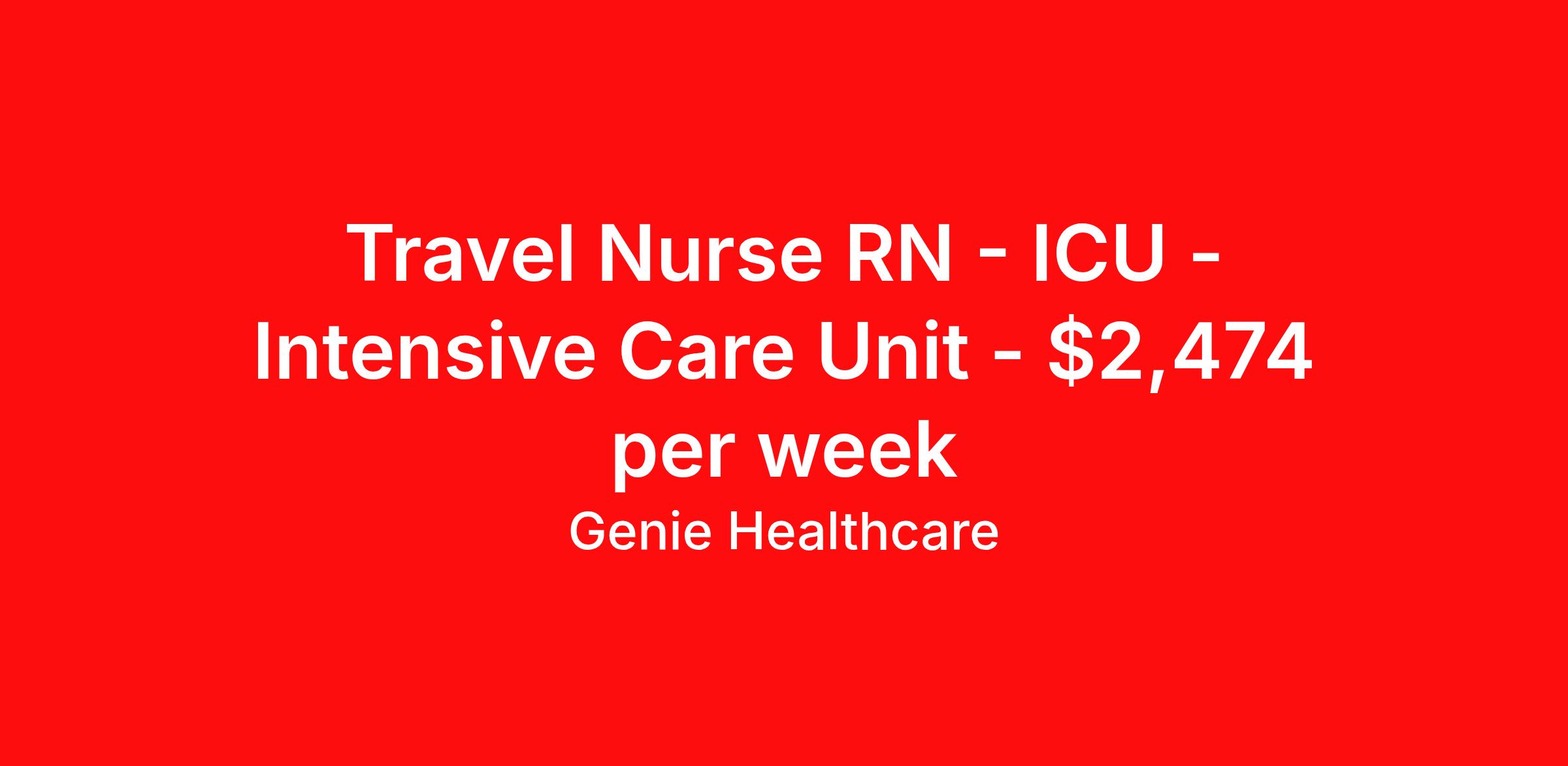 Genie Healthcare is seeking a travel nurse RN ICU - Intensive Care Unit for a travel nursing job in Norfolk, Nebraska. Job Description & Requirements Specialty: ICU - Intensive Care Unit Discipline: RN Start Date: 04/06/2026 Duration: 13 weeks 36 hours per week Shift: 12 hours, nights Employment Type: Travel Travel ICU RN Needed 6:00 PM - 6:30 AM12 Hr Overnight SUN-SAT WEEKEND Package About Genie Healthcare Genie Healthcare is one of the fastest growing Nurse Travel Agencies in the USA. Genie serves hundreds of facilities and has over 4000 current travel RN contracts open at any given time. Genie provides travel RN’s flexibility, support, top pay scale, housing and the 1 rated, multi-state health insurance coverage. Genie Healthcare carries with it a commitment to providing a comprehensive level of service and quality care. Growing from a small team of eager recruiters to a company with satisfied clients in nearly every corner of the nation, delivering excellence in patient and customer care is the key to Genie’s success. The management team has 20 years of experience in workforce solutions and staffing in medical and non-medical fields, roles ranging from Clerical job to Cardiologist to software developer to CEO.