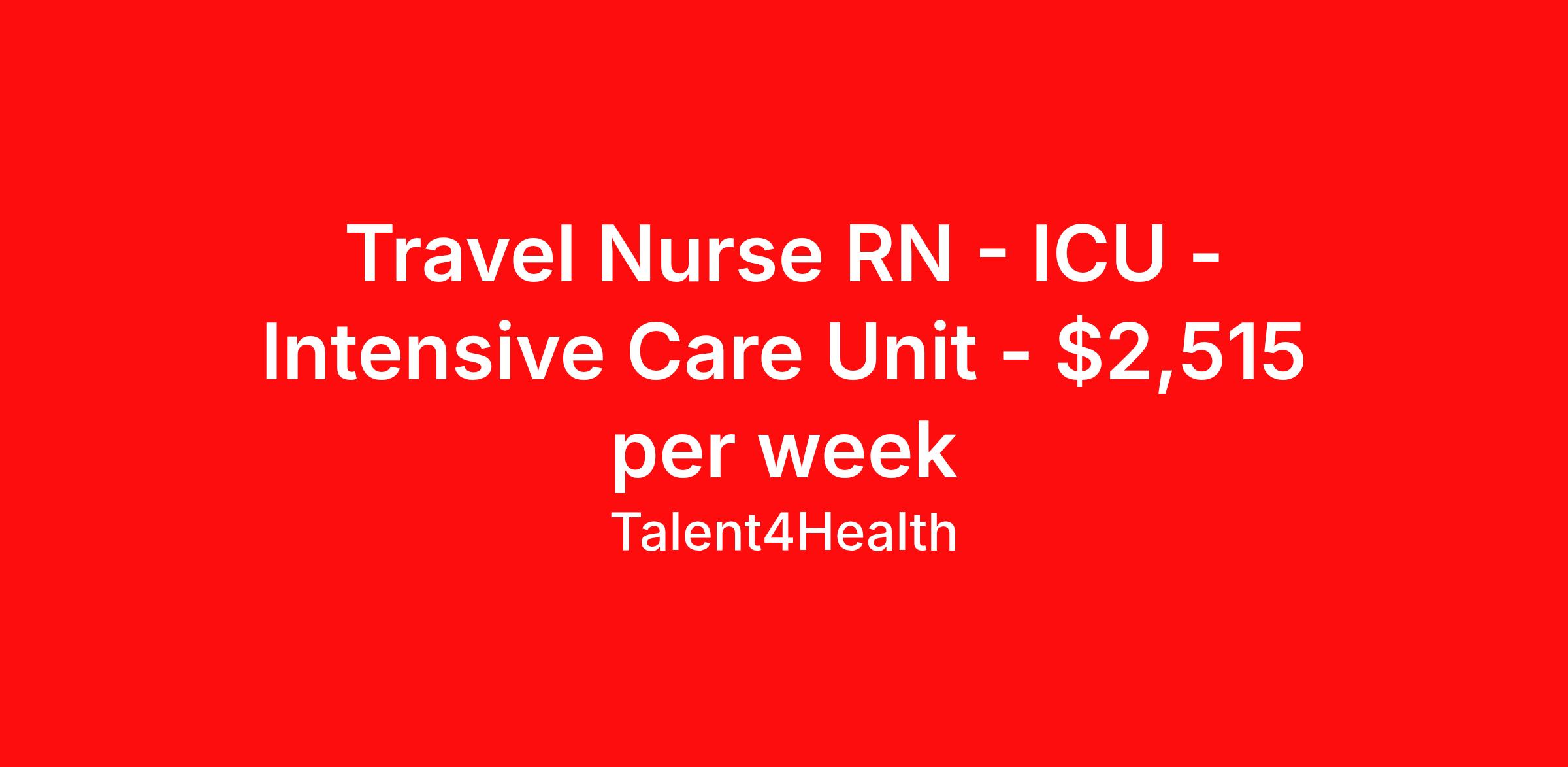 Travel Nurse RN - ICU - Intensive Care Unit - $2,515 per week