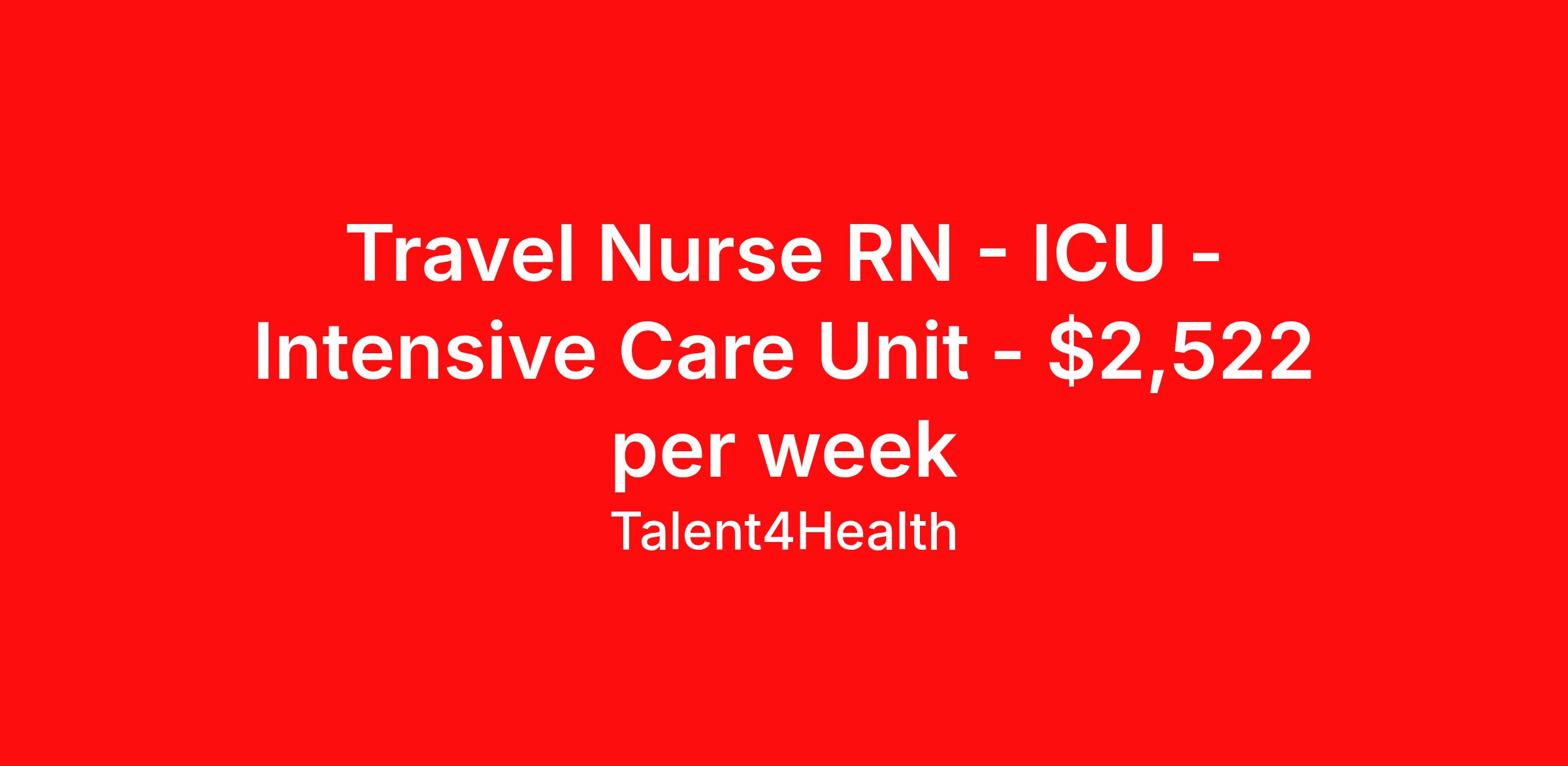 Travel Nurse RN - ICU - Intensive Care Unit - $2,522 per week