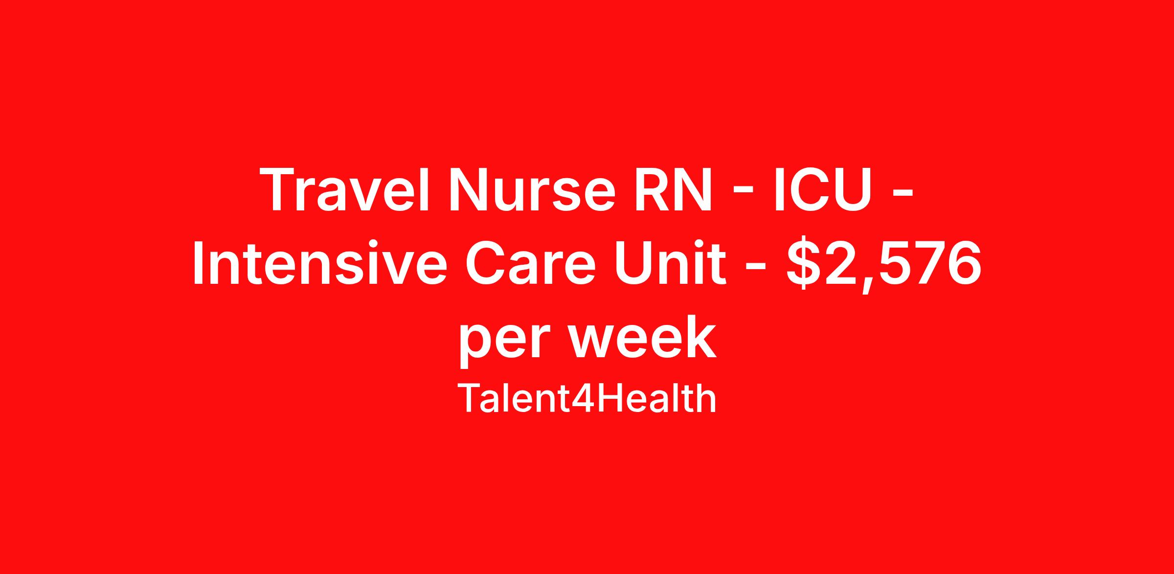 Travel Nurse RN - ICU - Intensive Care Unit - $2,576 per week