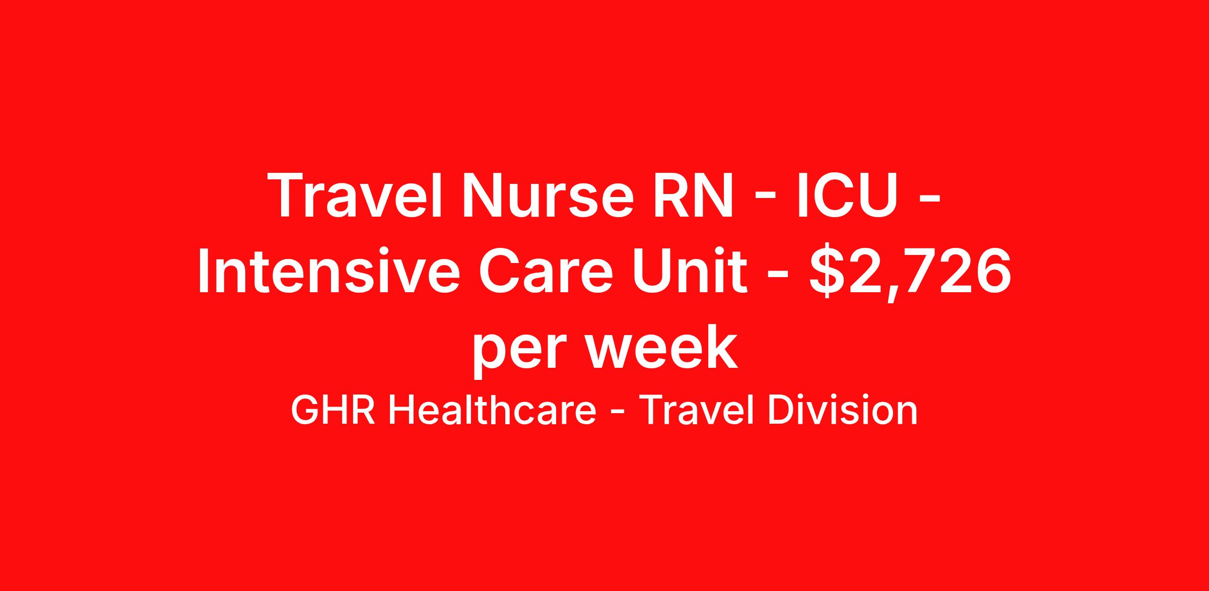 GHR Healthcare - Travel Division is seeking a travel nurse RN ICU - Intensive Care Unit for a travel nursing job in Burlington, Massachusetts. Job Description & Requirements Specialty: ICU - Intensive Care Unit Discipline: RN Start Date: 04/13/2026 Duration: 13 weeks 36 hours per week Shift: 12 hours, nights Employment Type: Travel About GHR Healthcare - Travel Division For over 30 years, GHR Healthcare has been the bridge between healthcare professionals and the facilities that need them nationwide. We're committed to uncovering your ideal fit, supported by GHR's dedication to competitive compensation, transparent communication, and a devoted team that genuinely cares about your career journey. You can trust us to stand by your side as your advocate, confidante, and partner in advancing your career. At GHR, care and consideration are at the heart of everything we do. Visit ghrhealthcare.com to learn more.