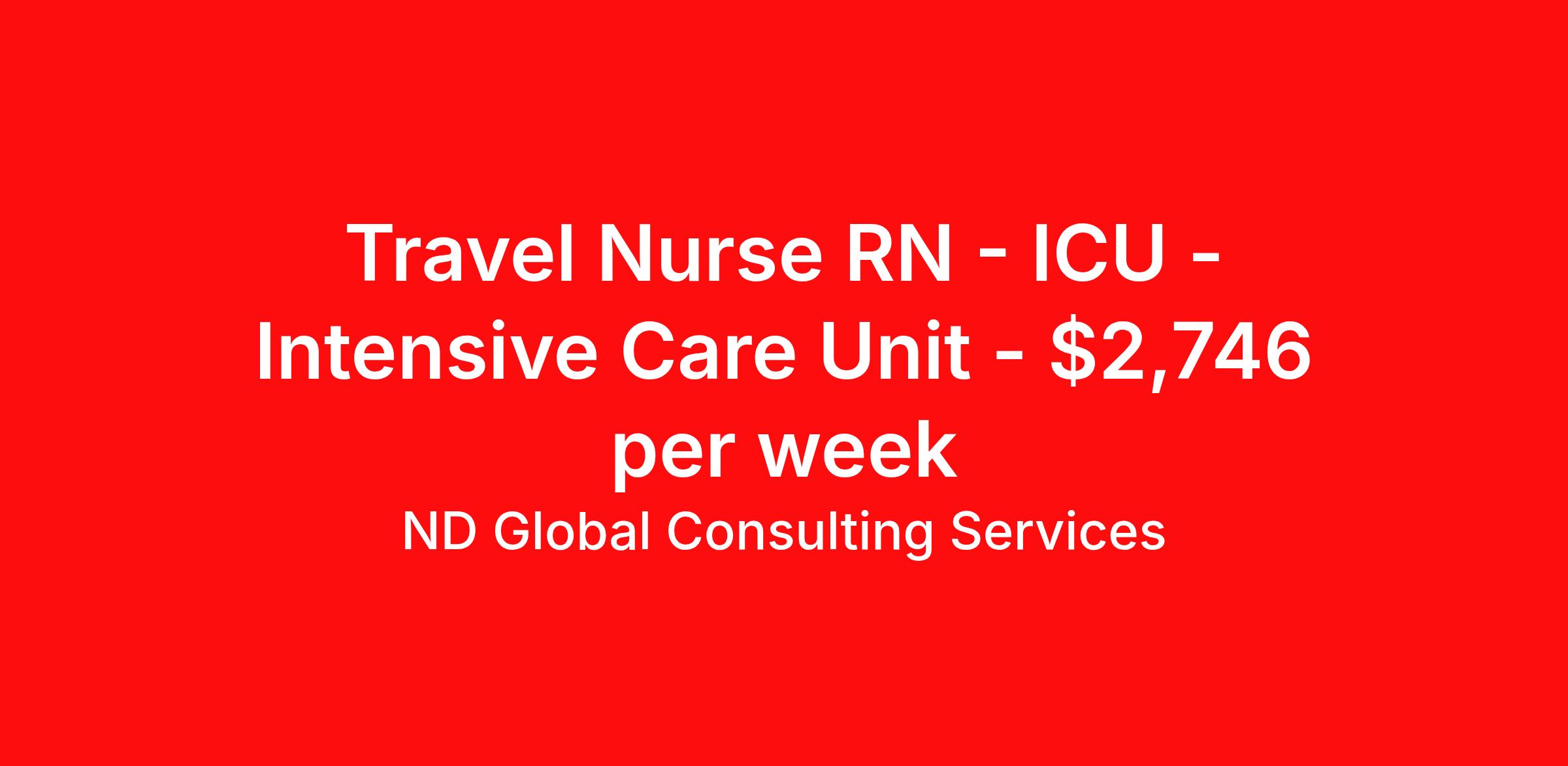 ND Global Consulting Services is seeking a travel nurse RN ICU - Intensive Care Unit for a travel nursing job in Utica, New York. Job Description & Requirements Specialty: ICU - Intensive Care Unit Discipline: RN Start Date: 03/23/2026 Duration: 13 weeks 36 hours per week Shift: 12 hours, nights Employment Type: Travel Join our team as a Travel Registered Nurse in the Intensive Care Unit located in Utica, New York. This exciting night shift position requires dedication and expertise to provide exceptional care in a high-acuity environment. The contract begins on March 23, 2026, offering guaranteed hours of 36 per week with 3 shifts weekly. Responsibilities include monitoring critically ill patients, administering medications, and collaborating with the healthcare team to ensure top-quality care. Candidates should demonstrate strong critical care skills and adaptability in fast-paced situations. Key highlights: - Work in the vibrant city of Utica, NY - Night shifts for enhanced focus and patient care - Guaranteed 36 hours per week for job stability Ideal candidates will have ICU expertise and a passion for excellence in patient outcomes. Apply now for this rewarding travel nursing opportunity!