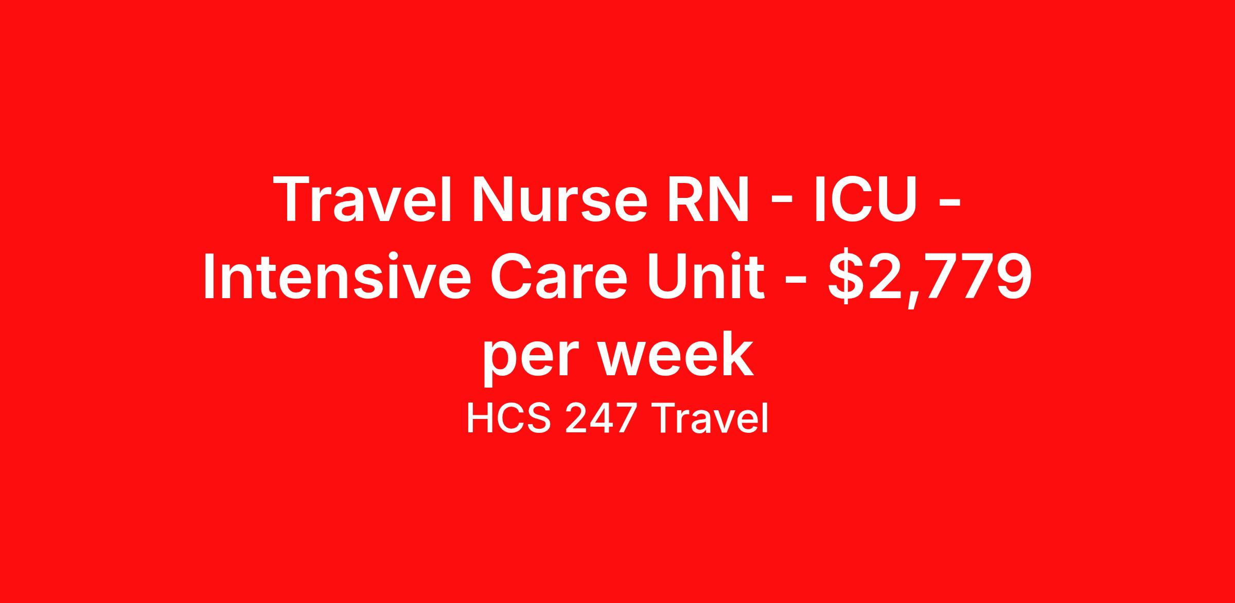 Travel Nurse RN - ICU - Intensive Care Unit - $2,779 per week