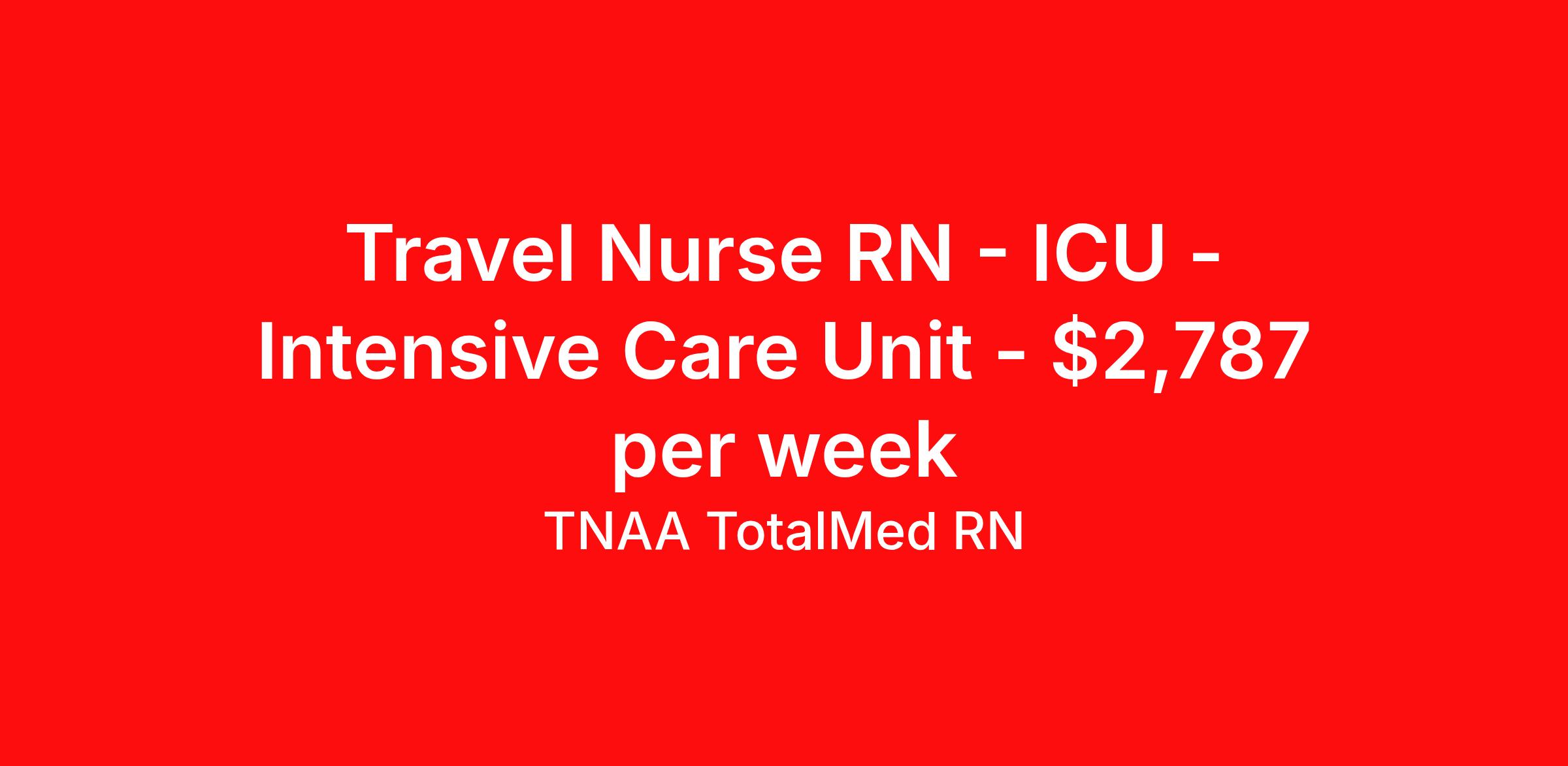 TNAA TotalMed RN is seeking a travel nurse RN ICU - Intensive Care Unit for a travel nursing job in Rapid City, South Dakota. Job Description & Requirements Specialty: ICU - Intensive Care Unit Discipline: RN Duration: 13 weeks 48 hours per week Shift: 12 hours, days Employment Type: Travel We're looking for Intensive Care Unit RNs for an immediate travel nurse opening in Rapid City, SD. The right nurse should have 1-2 years recent acute care experience. Read below for more requirements. As an ICU Travel Nurse, you'll be responsible for evaluating and monitoring patients in an Intensive Care Unit setting. ICU RNs provide the most direct care to patients in life-threatening situations, documenting and providing physician-directed care, assessing and implementing patient care plans, and delegating to other care providers as appropriate. As an ICU RN you will also be providing education and support to patient families, possibly for long-term care needs. As an ICU Travel Nurse, you should be prepared to perform the following tasks: Provide basic bedside care. Prepare, administer and record prescribed medication, reporting any adverse reactions to treatment. Order and evaluate diagnostic tests. Take samples for lab work, order corresponding lab work and interpret reports. Monitor and adjust specialized equipment, and interpret and record electronic displays. Ensure proper placement and functioning of catheters, leads and tubing. Communicate patients' conditions to family members. ICU Travel Nurses should be able to stand and walk for long periods of time, as well as bend, lean and stoop without difficulty. RNs should be able to easily lift 20 pounds. Moving or lifting of patients may require lifting of up to 50 pounds at times. RNs may face hazards from exposure to certain chemicals or infectious diseases and will treat patients that may be confused, agitated, and/or uncooperative. Requirements*: ACLS, BLS, NIH, TNCC, 2 Years * Additional certifications may be required before beginning an assignment. TotalMed Travel Job ID 1389307. Pay package is based on 12 hour shifts and 48 hours per week (subject to confirmation) with tax-free stipend amount to be determined. Posted job title: Intensive Care Unit - ICU RN - Travel Nurse About TNAA TotalMed RN TotalMed is a Top Ten, travel nursing and healthcare staffing agency with the mission of igniting purpose in healthcare. The organization staffs nurses, therapists, pharmacists, and other clinicians of all specialties in all 50 states. They offer local and travel jobs and match caregivers with the right organization to assist both facilities and patients. As an organization, they focus on putting highly-skilled staff into facilities to ensure adequate staffing for a better patient experience. TotalMed specializes in recruiting and placing healthcare professionals in travel, PRN, and permanent positions across the country in Nursing and Allied Health. Throughout 2020, the organization filled roles at even the most short-staffed facilities during the most challenging time in healthcare. By matching the right travel healthcare professional with the right organization, TotalMed continues to offer a lifeline to facilities and their patients. Benefits Weekly pay Guaranteed Hours Continuing Education 401k retirement plan Sick pay Wellness and fitness programs Referral bonus Employee assistance programs Medical benefits Dental benefits Vision benefits Benefits start day 1