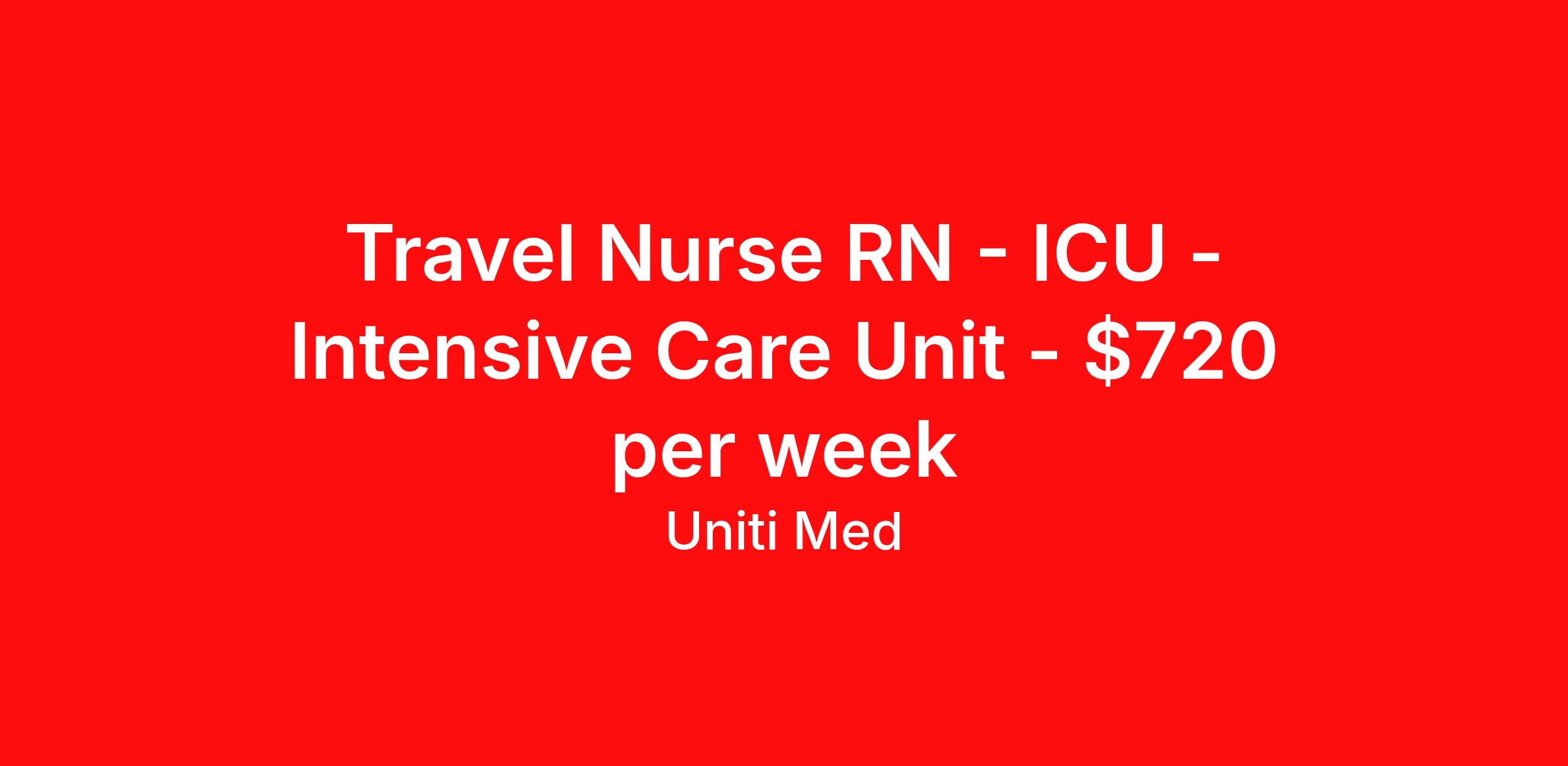 Travel Nurse RN - ICU - Intensive Care Unit - $720 per week