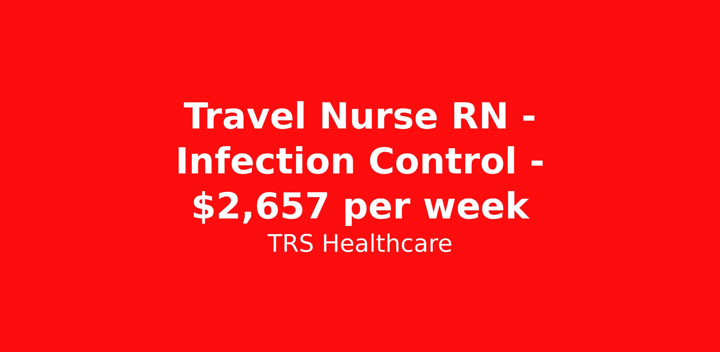TRS Healthcare is seeking a travel nurse RN Infection Control for a travel nursing job in Kealakekua, Hawaii. Job Description & Requirements Specialty: Infection Control Discipline: RN Start Date: ASAP Duration: 13 weeks 40 hours per week Shift: 8 hours, rotating Employment Type: Travel TRS Healthcare Job ID 1416941. Pay package is based on 8 hour shifts and 40 hours per week (subject to confirmation) with tax-free stipend amount to be determined. Posted job title: Infection Control Registered Nurse About TRS Healthcare TRS Healthcare has been a leader in the healthcare staffing industry for over 25 years, providing exceptional career opportunities for travel nurses and allied health professionals. An RN-founded, woman-owned company, TRS Healthcare has team members in all 50 states. We recruit and support registered nurses, licensed practical nurses, surgical technicians, respiratory therapists, imaging technologists, laboratory specialists, and other experienced nursing and allied healthcare professionals. We staff hundreds of healthcare facilities across the U.S. in urban, rural, and underserved areas, including multi-state hospital systems, critical access hospitals, rural community hospitals, long-term care facilities, trauma centers, standalone clinics, and more. Learn more about TRS Healthcare at trshealthcare.com .