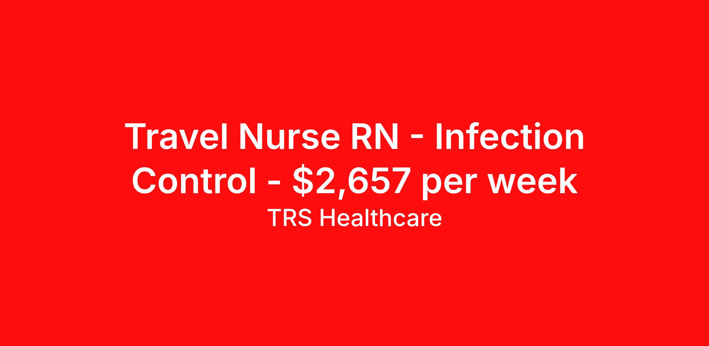 TRS Healthcare is seeking a travel nurse RN Infection Control for a travel nursing job in Kealakekua, Hawaii. Job Description & Requirements Specialty: Infection Control Discipline: RN Start Date: ASAP Duration: 13 weeks 40 hours per week Shift: 8 hours, rotating Employment Type: Travel TRS Healthcare Job ID 1416941. Pay package is based on 8 hour shifts and 40 hours per week (subject to confirmation) with tax-free stipend amount to be determined. Posted job title: Infection Control Registered Nurse About TRS Healthcare TRS Healthcare has been a leader in the healthcare staffing industry for over 25 years, providing exceptional career opportunities for travel nurses and allied health professionals. An RN-founded, woman-owned company, TRS Healthcare has team members in all 50 states. We recruit and support registered nurses, licensed practical nurses, surgical technicians, respiratory therapists, imaging technologists, laboratory specialists, and other experienced nursing and allied healthcare professionals. We staff hundreds of healthcare facilities across the U.S. in urban, rural, and underserved areas, including multi-state hospital systems, critical access hospitals, rural community hospitals, long-term care facilities, trauma centers, standalone clinics, and more. Learn more about TRS Healthcare at trshealthcare.com .