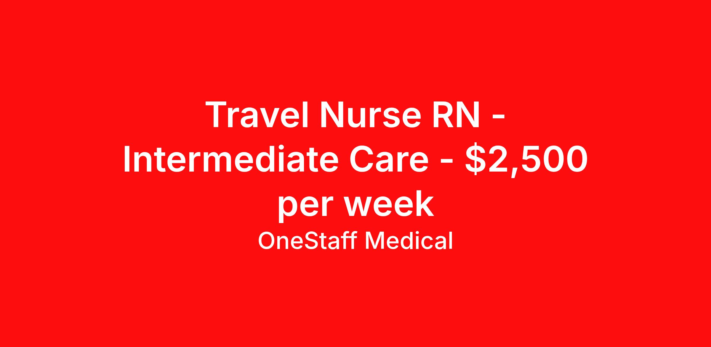 OneStaff Medical is seeking a travel nurse RN Intermediate Care for a travel nursing job in Boston, Massachusetts. Job Description & Requirements Specialty: Intermediate Care Discipline: RN Start Date: ASAP Duration: 13 weeks 36 hours per week Shift: 12 hours, rotating Employment Type: Travel BLS, ACLS About OneStaff Medical You deserve a partner that is working for you. Be bold and let us do just that. We’ll take care of you while you are away from your own “home base” in every way we can, and ideally do more than you expect. Your team at OneStaff is dedicated to finding the perfect assignments (for you), negotiate the best rates and handles any issues that may arise while you are on assignment. We take great pride in building relationships with our traveling professionals and we enjoy hearing about your experiences. Whatever the need, we are here to help along the journey. We understand you are the heart and soul of what we are. Whether it is housing, payroll, travel, benefits, or just a friendly voice to talk to, we are there every step of the way. The company you choose is the most important decision you will make in your traveling career. We get that, so we’re committed to you 24 hours-a-day, 7 days-a-week. We’re your “one” solution in travel assignments and here to assist whether helping with accelerating your trajectory towards your career goals or meeting your travel requirements. Benefits Weekly pay Holiday Pay Guaranteed Hours 401k retirement plan Pet insurance Company provided housing options Sick pay Wellness and fitness programs Referral bonus Medical benefits Dental benefits Vision benefits