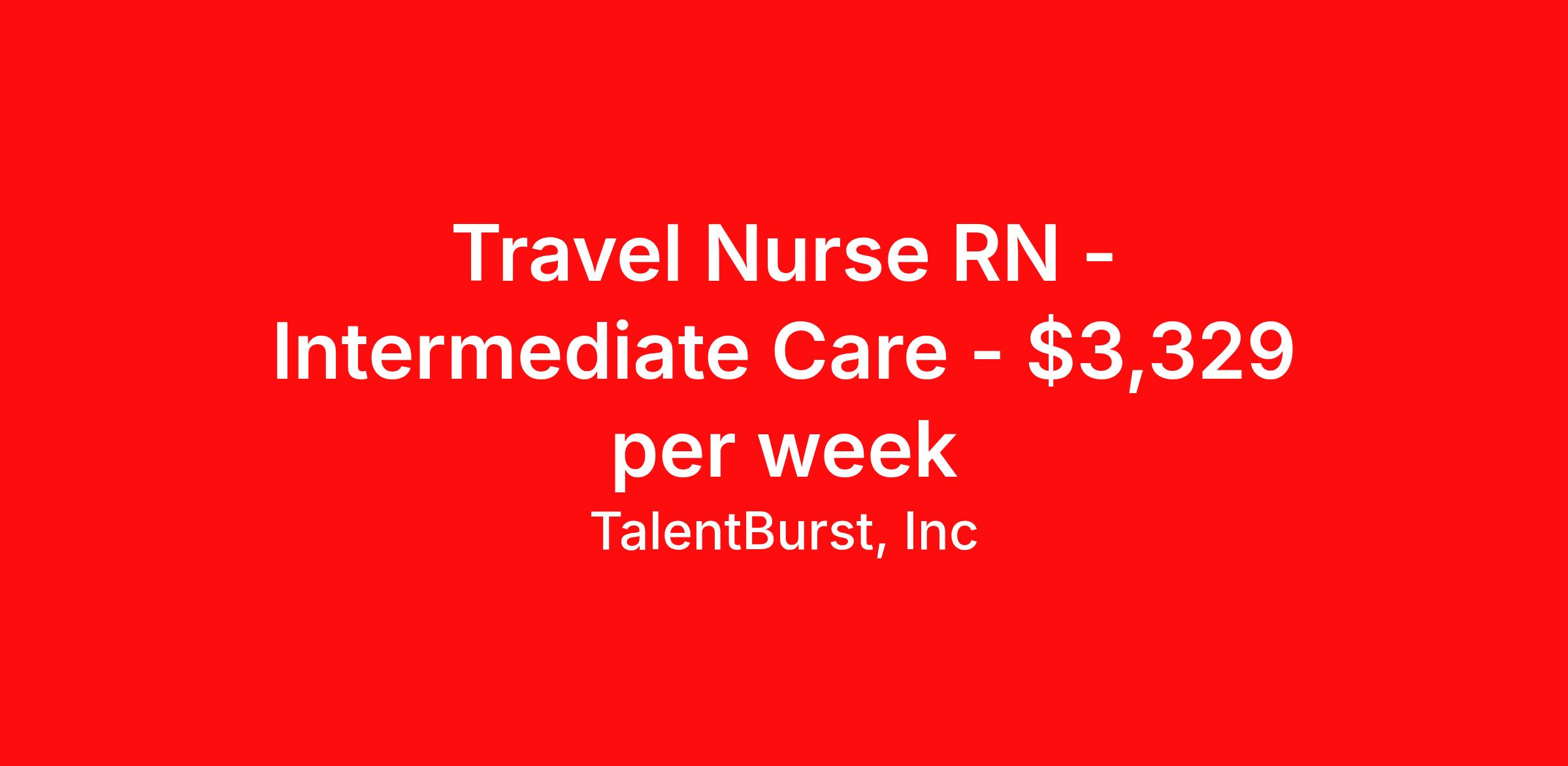 TalentBurst, Inc is seeking a travel nurse RN Intermediate Care for a travel nursing job in Boston, Massachusetts. Job Description & Requirements Specialty: Intermediate Care Discipline: RN Start Date: 04/20/2026 Duration: 12 weeks 36 hours per week Shift: 12 hours, flexible Employment Type: Travel Facility: BIDMC 04/06/26 to 07/04/26 13 Weeks 36 Hours/week 12H Rotating 07:00 PM - 07:30 AM Position Description: 12H rotating shifts - 50% day/night - 7a-7:30p, 7p-7:30a, every other weekend. 1 major and 1 minor holiday required, 550 bed facility. 32 beds in KM7. KM7 is a post op cardiothoracic surgery for intermediate care and medsurg. 2 years of experience required. MA license required. BLS, ACLS-AHA required. EPIC experience required. Nurse Patient Ratio by shift: 3:1/4:1 7a-7:30 p, 4:1/5:1 7p-7:30a . CNA/ PCT (staff per shift): 4 PCTs 7a-11p 2 PCTs 11p-7a . Unit clerk/Secretary(staff per shift): 2 Unit clerks 7a-11p, no unit clerk 11p-7a. Dedicated lead Resource 24/7. Nurses on Klarman 7 care for patients who have just undergone cardiac surgery, including coronary artery bypass grafts, valve replacements and repairs, and complex aortic procedures. The patients are transferred from the intensive care unit on post-operative day one. On Klarman 7, the nurses provide comprehensive care which prepares these patients for discharge to home or a rehabilitation facility as early as postoperative day four. Nurses on Klarman 7 also care for thoracic surgery and cardiology patients. Must be separated from BILH for 6 months to be considered. No locals TB_RN ZRHC Talent Burst Job ID 26-07001. Pay package is based on 12 hour shifts and 36 hours per week (subject to confirmation) with tax-free stipend amount to be determined. Posted job title: Registered Nurse - Intermediate Care About TalentBurst, Inc TalentBurst Health & Life Sciences is an established provider of healthcare workforce solutions, servicing healthcare facilities across the United States for over 15 years. As a Joint Commission Certified Agency, our commitment to quality, integrity, and exceptional service has made us a trusted name in the healthcare staffing landscape. Our mission is to bridge the gap between healthcare professionals seeking fulfilling opportunities and healthcare organizations striving to maintain their high standards of care. We are committed to providing top-notch healthcare professionals with access to facilities where they can focus on delivering exceptional patient care and thrive. Whether you're a nurse, allied health professional, or administrative personnel, we have the expertise to match your skills and aspirations with the perfect placement.