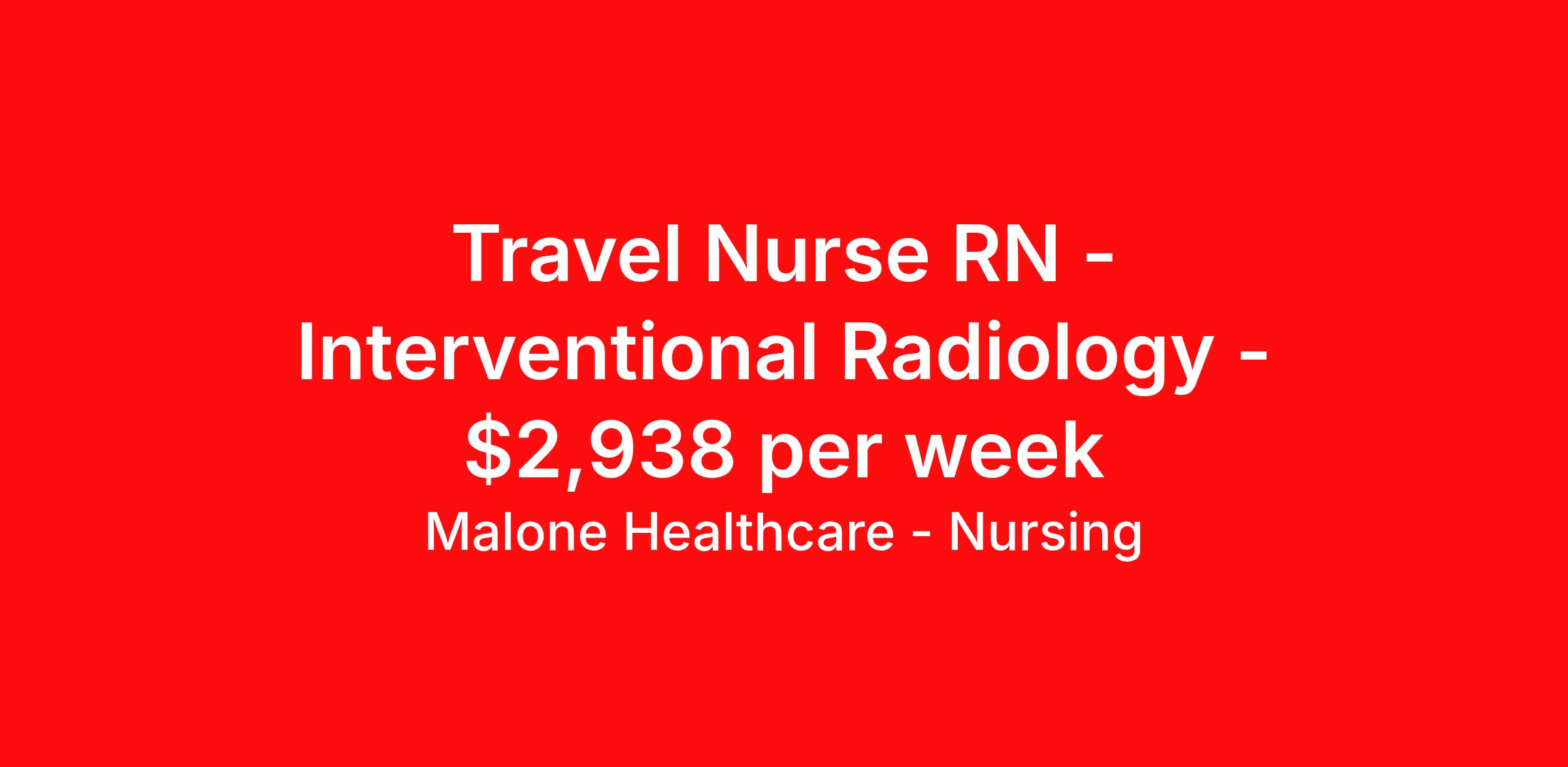 Travel Nurse RN - Interventional Radiology - $2,938 per week