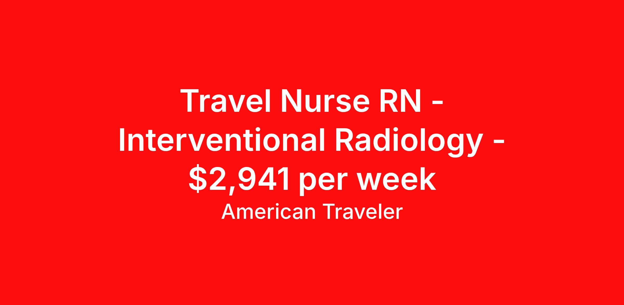 American Traveler is seeking a travel nurse RN Interventional Radiology for a travel nursing job in Modesto, California. Job Description & Requirements Specialty: Interventional Radiology Discipline: RN Start Date: 03/23/2026 Duration: 13 weeks 40 hours per week Shift: 10 hours, days Employment Type: Travel Assignment Overview Shift: Days, 4x10hrs Hours: 40 hrs/wk Start Date: Mar 23, 2026 Length: 13 weeks Openings: 1 Description American Traveler is hiring an experienced RN for an Interventional Radiology position in California, requiring at least 2 years of IR experience and active BLS and ACLS certifications. Details Interventional Radiology (IR) department within a hospital setting Day shift schedule: 7:00 AM – 3:30 PM 13-week contract Requirements Active CA RN license required Active BLS and ACLS certifications required Minimum 2 years of Interventional Radiology experience required Social Security number (full SSN preferred; last 4 digits acceptable), driver's license, and date of birth required for consideration Two professional references required for consideration Additional Information Local candidates are welcome to apply Current or recent Tenet Health employees are not eligible — candidates employed by Tenet Health within the past 12 months may not be considered American Traveler Job ID P-675148. Pay package is based on 10 hour shifts and 40 hours per week (subject to confirmation) with tax-free stipend amount to be determined. Posted job title: Travel RN - Interventional Radiology/IR - Interventional Radiology About American Traveler With over 25 years of experience, American Traveler has established a reputation for outstanding customer service. Our team ensures a smooth, worry-free experience for those starting on or expanding their travel nursing and allied careers. With thousands of travel nursing and allied jobs nationwide, our attentive and approachable recruiters find positions that align perfectly with your career aspirations and personal requirements. American Traveler offers exceptional benefits, including premium medical, dental, vision and life insurance beginning day one of your assignment, generous 401(k) match, substantial housing stipends, and more. Additionally, with 24/7 support and access to our in-house clinicians, you are assured confidence and comfort throughout your assignment. With our team behind you, you can relax and enjoy a rewarding travel career.