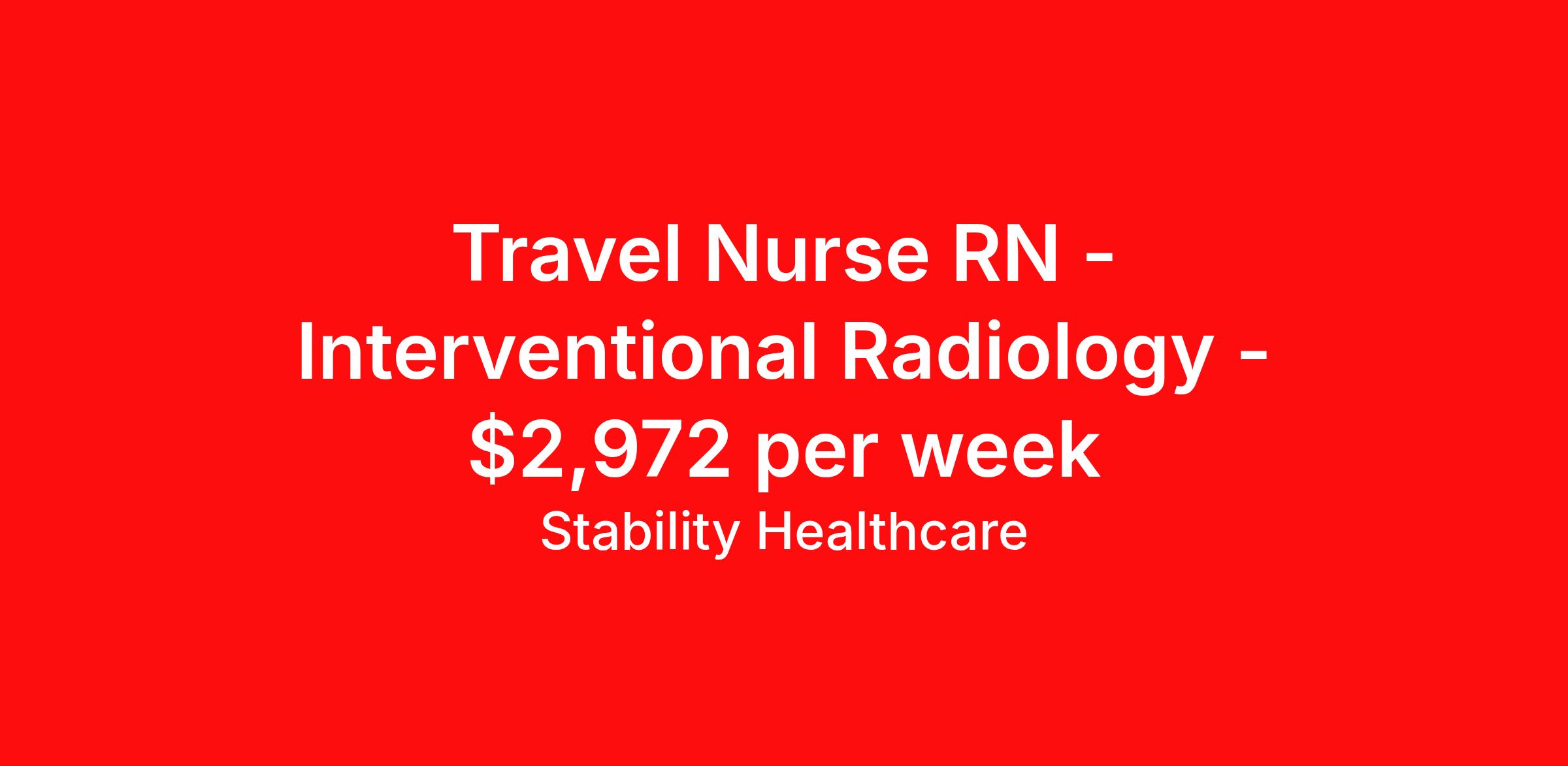 Travel Nurse RN - Interventional Radiology - $2,972 per week