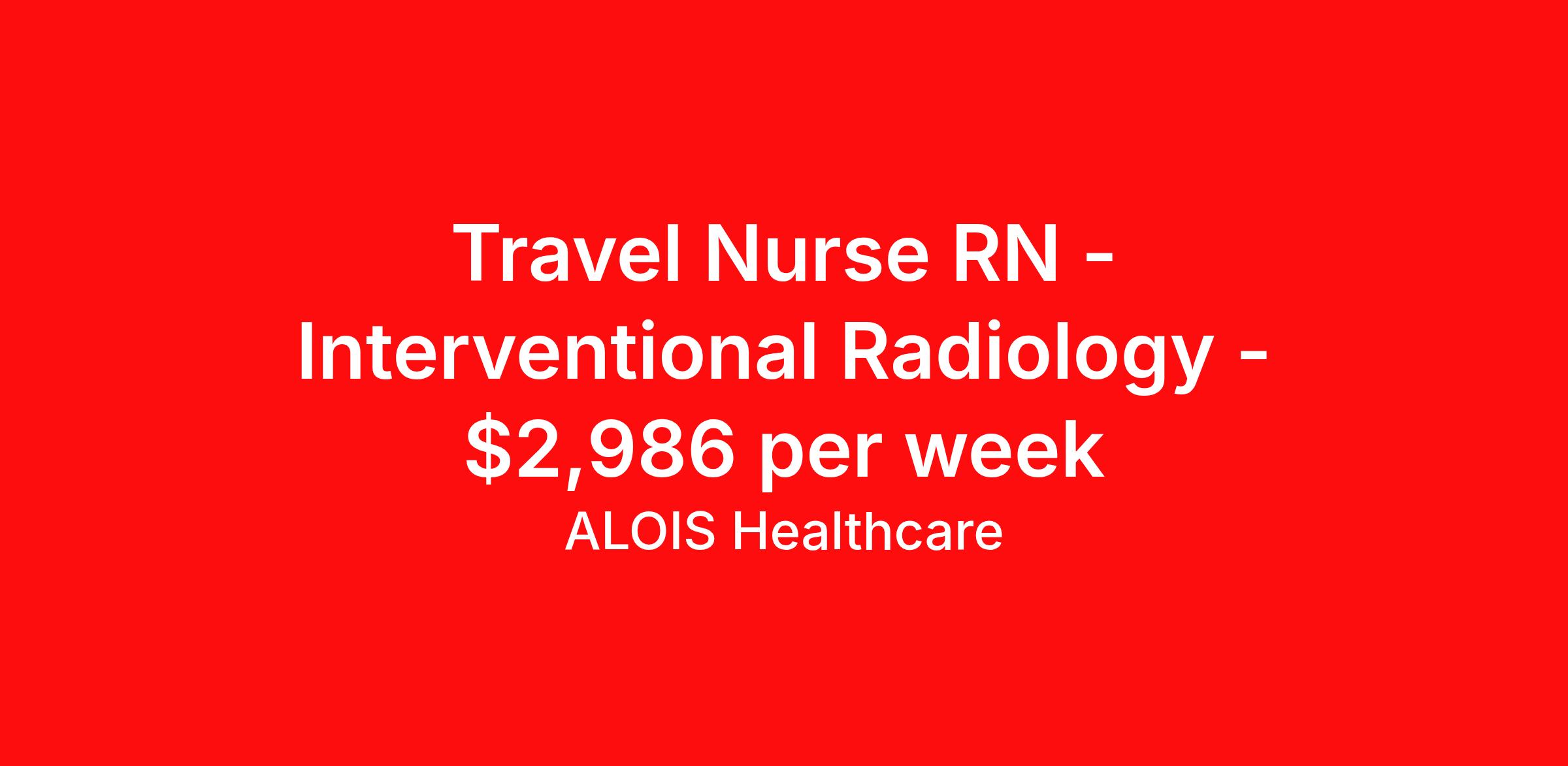 ALOIS Healthcare is seeking a travel nurse RN Interventional Radiology for a travel nursing job in Columbia, Missouri. Job Description & Requirements Specialty: Interventional Radiology Discipline: RN Start Date: 04/13/2026 Duration: 13 weeks 40 hours per week Shift: 8 hours, days Employment Type: Travel An Interventional Radiology nurse is a specialized RN who assists the physician in these procedures. The nurse is responsible for patient care during the entire process, including the initial assessment, the plan of care, administering medication, checking for lab results, and reviewing the patient's medical history. ALOIS Healthcare Job ID 17952390. Pay package is based on 8 hour shifts and 40.0 hours per week (subject to confirmation) with tax-free stipend amount to be determined. Posted job title: RN Interventional Radiology About ALOIS Healthcare Why ALOIS Healthcare? ALOIS means “brave warrior” and that’s what you are- Warrior in Scrubs! Just as you advocate for your patients, we will advocate for you. The pay you deserve. The support you need. We’re in your corner for every battle – because you shouldn’t settle for anything less when it comes to your career. We offer: · Industry-leading pay Generous cost of living and housing stipends · Opportunities for referral, sign-on, and extension bonuses · Weekly health insurance or health insurance Marketplace weekly bonus · Continuing education credits We’re proud to be recognized globally as a certified minority-owned staffing supplier. At ALOIS Healthcare: · Everyone Matters · We are Performance Driven · We are Open, Honest and Direct · We are Transparent · We are Inclusive · We Do the Right Thing We care about you - and your success is our success.