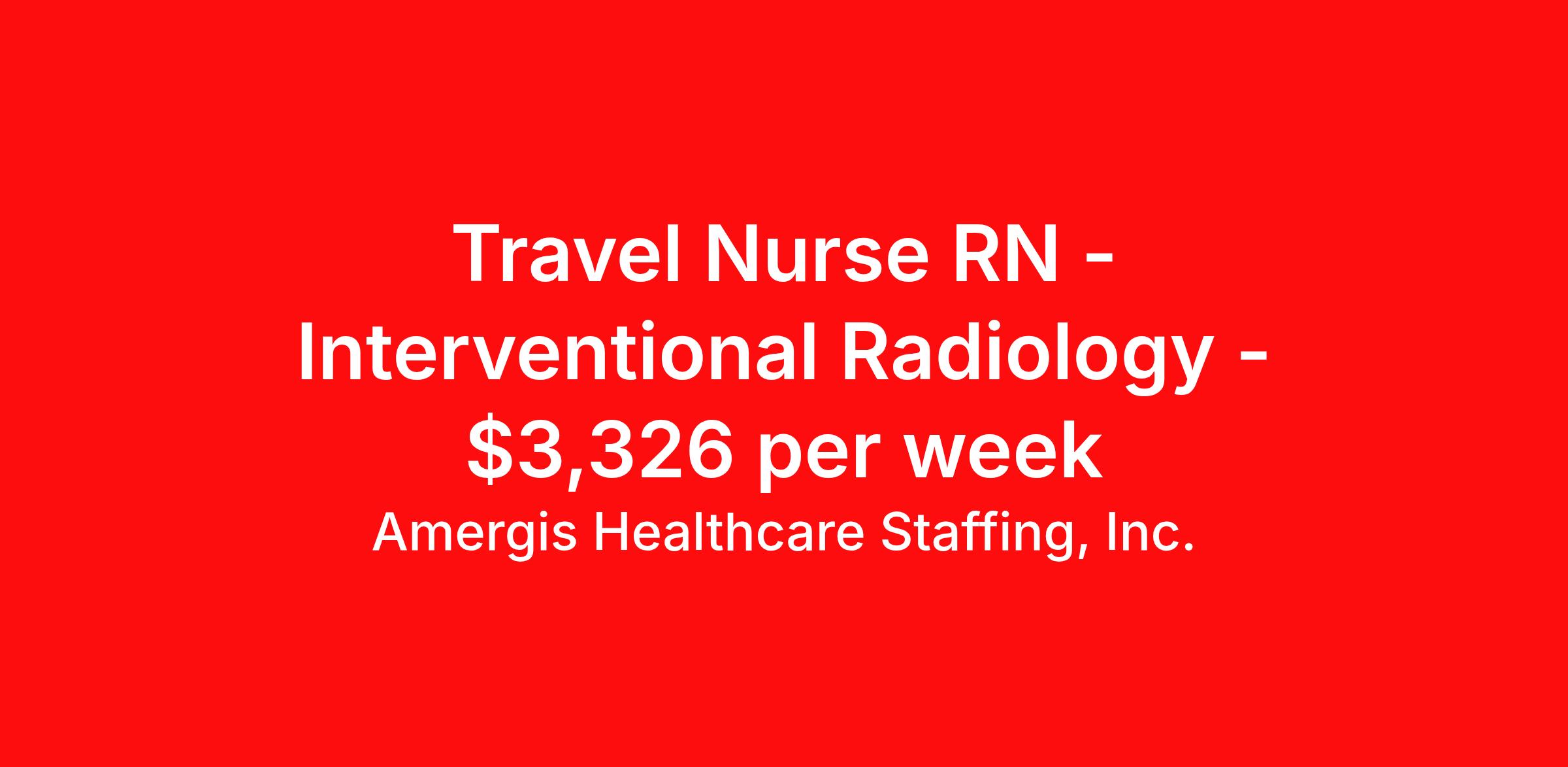 Amergis Healthcare Staffing, Inc. is seeking a travel nurse RN Interventional Radiology for a travel nursing job in Natrona Heights, Pennsylvania. Job Description & Requirements Specialty: Interventional Radiology Discipline: RN Start Date: 04/13/2026 Duration: 12 weeks 40 hours per week Shift: 8 hours, days, evenings, nights Employment Type: Travel An Interventional Radiology Nurse is a specialized RN who assists the physician with medical imaging such as MRIs, ultrasounds or X-rays. The RN - Interventional Radiology is responsible for patient care during the entire process, including the initial assessment, the plan of care, administering medication, checking for lab results, and reviewing the patient’s medical history. Essential Duties and Responsibilities: Provides nursing care and performs nursing procedures in all modalities of imaging services (CT, MRI, IR, Ultrasound, Fluoroscopy, and Nuclear Medicine Initiates IV access or assesses the patency of IV access prior to the administration of contrast media or other intravenous medications or blood products Obtains and administers medications as ordered by the physician Recognizes emergency situations and participates in treatment interventions including but not limited to contrast reactions with all modalities of imaging services Ensures that emergency supplies are current and replaced as needed Monitors Critical Care and Emergency Department prior to patient transport Accurately documents patient assessment and nursing interventions for patients receiving conscious sedation Consults with physicians and radiologists regarding abnormal lab results Sets up and maintains sterile trays and other equipment Passes instruments and supplies to radiologist practicing sterile technique Minimum Requirements: At least 1 year of experience required Current BLS and ACLS TB Questionnaire, PPD or chest x-ray if applicable Current Health certificate (per contract or state regulation) Must meet all federal, state and local requirements Successful completion of new hire training as applicable to job site Understand patient confidentiality and HIPAA requirements Ability to effectively elicit/provide information to and from appropriate individuals (including, but not limited to, supervisors, co-workers, clients) via strong communication skills; proficiency in the English language may be required Computer proficiency required Must be at least 18 years of age Benefits At Amergis, we firmly believe that our employees are the heartbeat of our organization and we are happy to offer the following benefits: Competitive pay & weekly paychecks Health, dental, vision, and life insurance 401(k) savings plan Awards and recognition programs About Amergis Amergis, formerly known as Maxim Healthcare Staffing, has served our clients and communities by connecting people to the work that matters since 1988. We provide meaningful opportunities to our extensive network of healthcare and school-based professionals, ready to work in any hospital, government facility, or school. Through partnership and innovation, Amergis creates unmatched staffing experiences to deliver the best workforce solutions. Amergis is an equal opportunity/affirmative action employer. All qualified applicants will receive consideration for employment without regard to sex, gender identity, sexual orientation, race, color, religion, national origin, disability, protected Veteran status, age, or any other characteristic protected by law. About Amergis Healthcare Staffing, Inc. Amergis, formerly known as Maxim Healthcare Staffing, has served our clients and communities by connecting people to the work that matters since 1988. We provide meaningful opportunities to our extensive network of healthcare and school-based professionals, ready to work in any hospital, government facility, or school. Through partnership and innovation, Amergis creates unmatched staffing experiences to deliver the best workforce solutions.