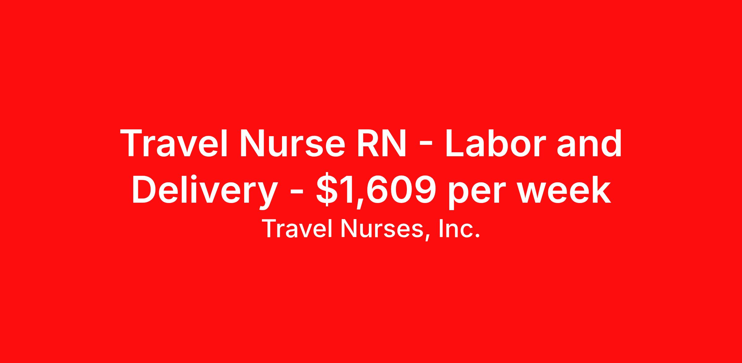 Travel Nurses, Inc. is seeking a travel nurse RN Labor and Delivery for a travel nursing job in Tampa, Florida. Job Description & Requirements Specialty: Labor and Delivery Discipline: RN Start Date: 03/23/2026 Duration: 13 weeks 36 hours per week Shift: 12 hours Employment Type: Travel Travel Nurses, Inc. Job ID 303043. Pay package is based on 12 hour shifts and 36 hours per week (subject to confirmation) with tax-free stipend amount to be determined. Posted job title: Labor and Delivery (L&D)-RN-Travel About Travel Nurses, Inc. Travel Nurses, Inc. is a leading healthcare staffing agency that provides healthcare professionals with opportunities to work across the country. Founded by nurses in 1988, TNI has more than 30 years of experience in the industry. The agency initially focused on staffing operating room settings in the MidSouth. However, this quickly evolved to encompass all nursing specialties and allied health fields nationwide. At the heart of our mission is a profound respect for nurses, whom we consider the cornerstone of healthcare. This acknowledgment extends beyond the nursing profession alone. Travel Nurses, Inc. now proudly embraces a wide array of healthcare professionals, recognizing their crucial roles in our collective mission. Travel Nurses, Inc. is dedicated to providing comprehensive support and opportunities that will help facilitate complete career mobility in the healthcare field. Our commitment to transparency ensures that all professionals, not just nurses, can confidently accept any assignment without financial uncertainties. We prioritize our professionals’ well-being with comprehensive benefits packages, including day-one healthcare coverage, competitive salaries, bonuses and incentives. This underscores our unwavering commitment to offering the best possible rewards and support for all the professionals we serve. Benefits Weekly pay Continuing Education 401k retirement plan Wellness and fitness programs Mileage reimbursement Referral bonus Employee assistance programs Medical benefits Dental benefits Vision benefits Benefits start day 1 License and certification reimbursement Life insurance Retention bonus