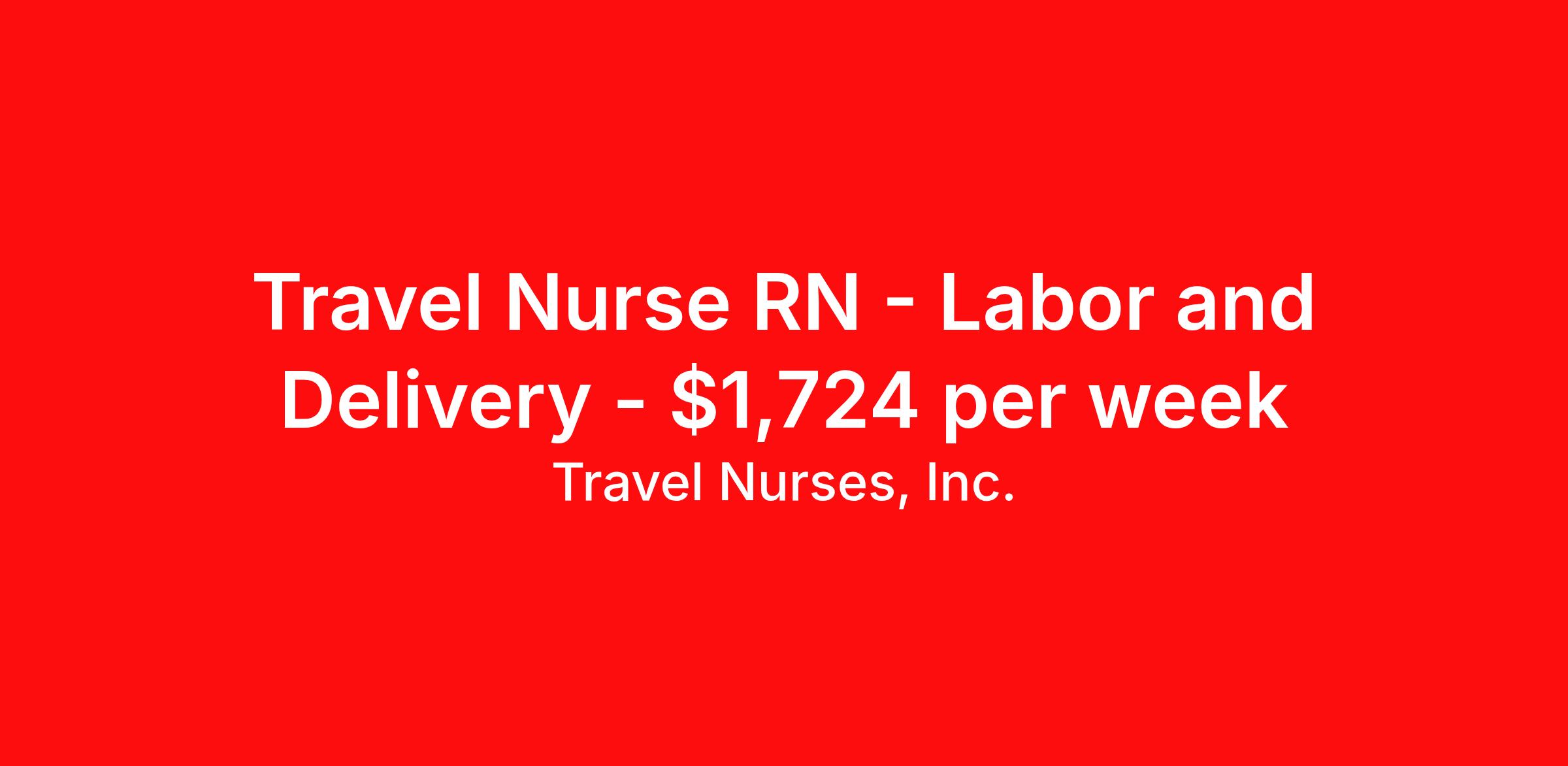 Travel Nurses, Inc. is seeking a travel nurse RN Labor and Delivery for a travel nursing job in Shawnee, Kansas. Job Description & Requirements Specialty: Labor and Delivery Discipline: RN Start Date: ASAP Duration: 13 weeks 36 hours per week Shift: 12 hours Employment Type: Travel Travel Nurses, Inc. Job ID 300385. Pay package is based on 12 hour shifts and 36 hours per week (subject to confirmation) with tax-free stipend amount to be determined. Posted job title: Labor and Delivery (L&D)-RN-Travel About Travel Nurses, Inc. Travel Nurses, Inc. is a leading healthcare staffing agency that provides healthcare professionals with opportunities to work across the country. Founded by nurses in 1988, TNI has more than 30 years of experience in the industry. The agency initially focused on staffing operating room settings in the MidSouth. However, this quickly evolved to encompass all nursing specialties and allied health fields nationwide. At the heart of our mission is a profound respect for nurses, whom we consider the cornerstone of healthcare. This acknowledgment extends beyond the nursing profession alone. Travel Nurses, Inc. now proudly embraces a wide array of healthcare professionals, recognizing their crucial roles in our collective mission. Travel Nurses, Inc. is dedicated to providing comprehensive support and opportunities that will help facilitate complete career mobility in the healthcare field. Our commitment to transparency ensures that all professionals, not just nurses, can confidently accept any assignment without financial uncertainties. We prioritize our professionals’ well-being with comprehensive benefits packages, including day-one healthcare coverage, competitive salaries, bonuses and incentives. This underscores our unwavering commitment to offering the best possible rewards and support for all the professionals we serve. Benefits Weekly pay Continuing Education 401k retirement plan Wellness and fitness programs Mileage reimbursement Referral bonus Employee assistance programs Medical benefits Dental benefits Vision benefits Benefits start day 1 License and certification reimbursement Life insurance Retention bonus