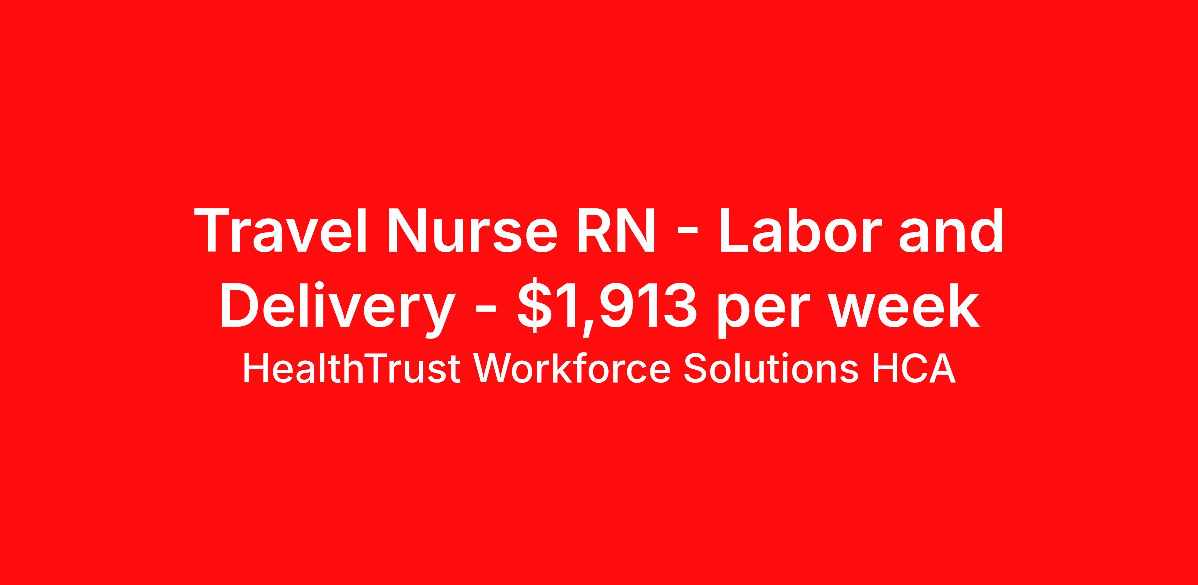 HealthTrust Workforce Solutions HCA is seeking a travel nurse RN Labor and Delivery for a travel nursing job in Nashville, Tennessee. Job Description & Requirements Specialty: Labor and Delivery Discipline: RN Start Date: 04/20/2026 Duration: 13 weeks 36 hours per week Shift: 12 hours, nights Employment Type: Travel About HealthTrust Workforce Solutions HCA At HealthTrust Workforce Solutions, healthcare is not just about the four walls of a facility but about the people who provide and receive care. Our focus is on empowering healthcare professionals to deliver exceptional patient experiences by providing them with the necessary skills, tools, and support. We partner with healthcare facilities nationwide to ensure that the right professionals are in the right roles. We prioritize our clinicians by giving them a voice and access to opportunities to fulfill their mission of improving lives by providing quality patient care. We are committed to our core values of Trust, Innovation, Adaptability, Courage, and Accountability. We are dedicated to positively impacting the healthcare industry by providing first-priority access to more than 200,000 jobs nationwide to our healthcare professionals. Join us and be part of the HealthTrust family, where you can make a difference every day. We embrace our changing environment, and we maintain a culture that has a rich tradition of transforming itself to meet the challenges of the future. MISSION STATEMENT While putting great people in the right roles is essential, our mission is far greater. We want our clinicians to be part of the HealthTrust family, where healthcare professionals have a voice and are empowered with the right tools and opportunities to fulfill their personal mission of improving lives. Plus, as a preferred partner to thousands of top-performing hospitals, we provide our healthcare professionals with first-priority access to more than 200,000 jobs nationwide. Benefits Dental benefits Vision benefits Referral bonus Continuing Education Life insurance