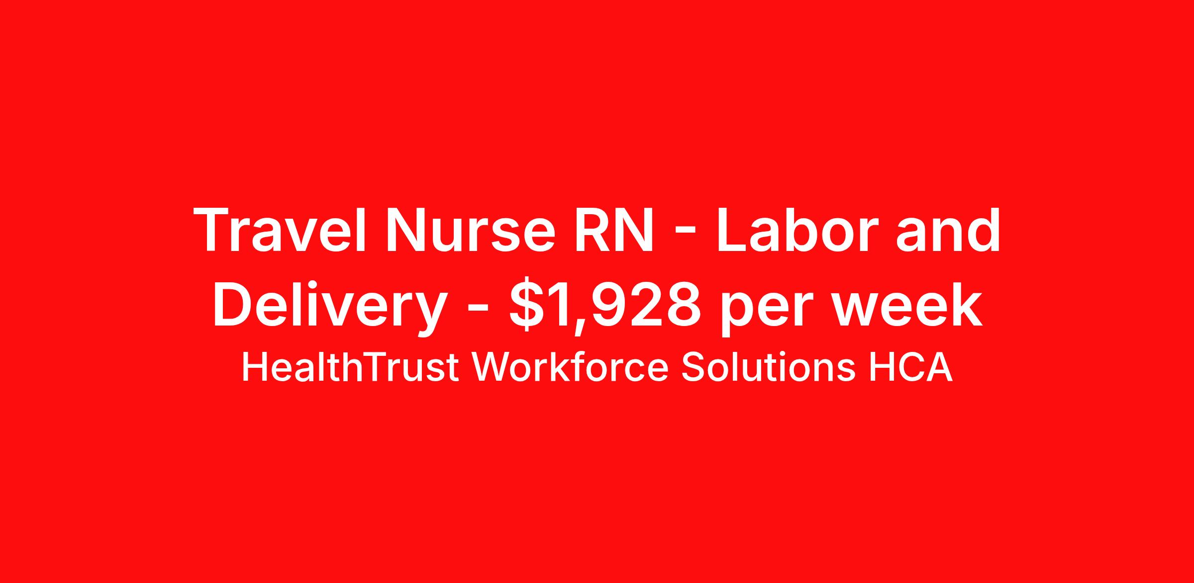 HealthTrust Workforce Solutions HCA is seeking a travel nurse RN Labor and Delivery for a travel nursing job in Smyrna, Tennessee. Job Description & Requirements Specialty: Labor and Delivery Discipline: RN Start Date: 04/06/2026 Duration: 13 weeks 36 hours per week Shift: 12 hours, nights Employment Type: Travel General Information Unit Specifics: · Number of Beds : 9 L&D, 3 swing rooms, 2 ORs & 3 bed OBED · Patient Ratios : 1-2 · Unit staffing description- (unit secretaries and tech availability) : Unit Secretary and scrub tech, dedicated CRNA & midwife in-house 24/7, OBGYN on call · Type of equipment : · Documentation system: CPN and Meditech · Scheduling requirements: 4 weekend shifts/month · Floating policy: can float to m/b or outside department to task · Patient Experience requirements: Remain above 75% Hospital Specifics- · Certifications: RN, ACLS, BLS, NRP. Fetal monitoring Hiring profile Requested Skill Set: Must have : Drive to provide highest quality of care to our laboring patients. Ability to support patient choice and promote vaginal birth opportunities specific to patient preference. Advanced skills needed: Spinning babies helpful, STABLE also helpful Procedures performed on unit: circulating in OR, IUPC, FSE, MgSO4, pp hemorrhage- JADA system, nitrous oxide Certifications Required: RN, ACLS, BLS, NRP. Fetal monitoring About HealthTrust Workforce Solutions HCA At HealthTrust Workforce Solutions, healthcare is not just about the four walls of a facility but about the people who provide and receive care. Our focus is on empowering healthcare professionals to deliver exceptional patient experiences by providing them with the necessary skills, tools, and support. We partner with healthcare facilities nationwide to ensure that the right professionals are in the right roles. We prioritize our clinicians by giving them a voice and access to opportunities to fulfill their mission of improving lives by providing quality patient care. We are committed to our core values of Trust, Innovation, Adaptability, Courage, and Accountability. We are dedicated to positively impacting the healthcare industry by providing first-priority access to more than 200,000 jobs nationwide to our healthcare professionals. Join us and be part of the HealthTrust family, where you can make a difference every day. We embrace our changing environment, and we maintain a culture that has a rich tradition of transforming itself to meet the challenges of the future. MISSION STATEMENT While putting great people in the right roles is essential, our mission is far greater. We want our clinicians to be part of the HealthTrust family, where healthcare professionals have a voice and are empowered with the right tools and opportunities to fulfill their personal mission of improving lives. Plus, as a preferred partner to thousands of top-performing hospitals, we provide our healthcare professionals with first-priority access to more than 200,000 jobs nationwide. Benefits Dental benefits Vision benefits Referral bonus Continuing Education Life insurance