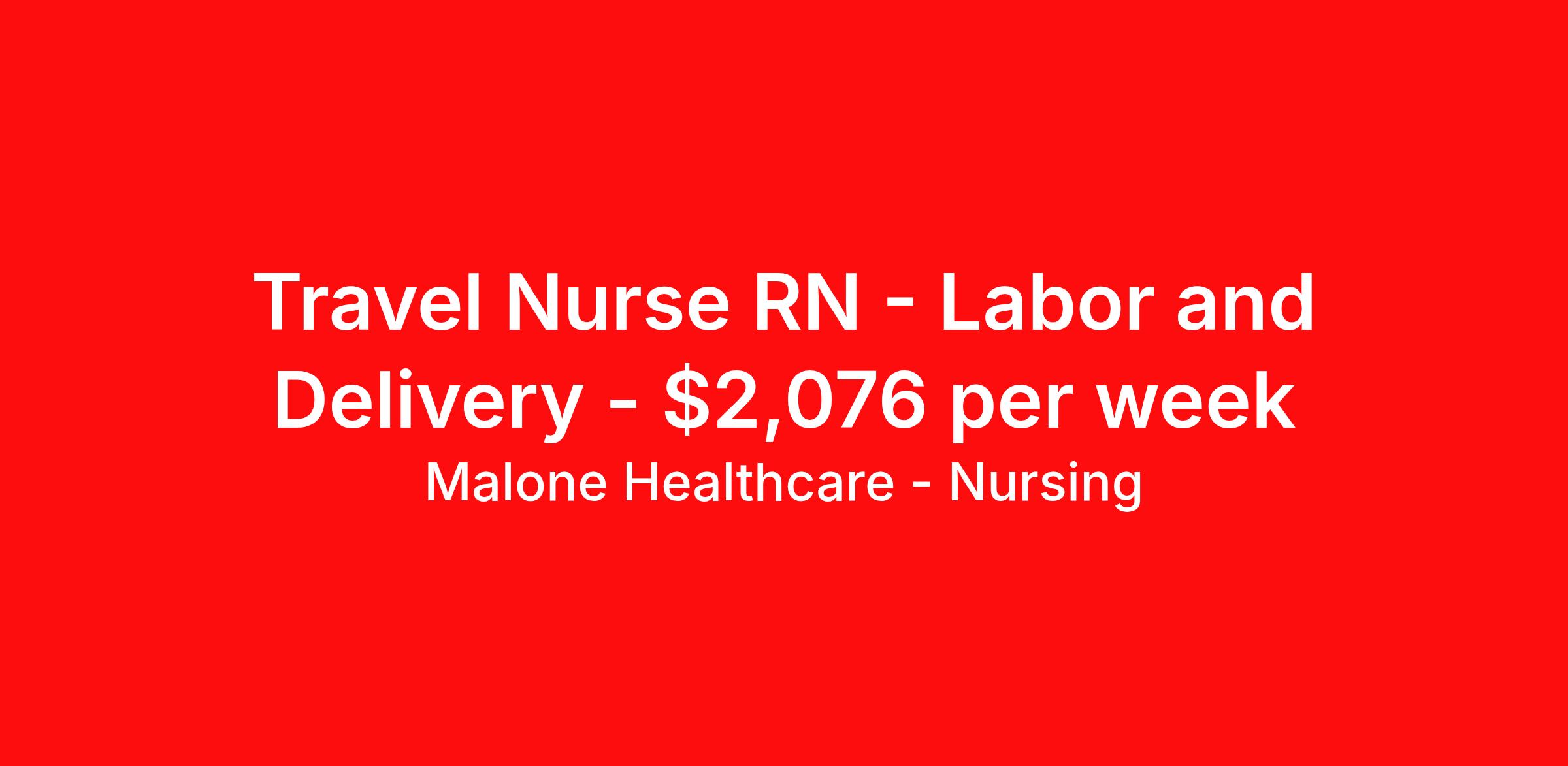 Malone Healthcare - Nursing is seeking a travel nurse RN Labor and Delivery for a travel nursing job in Henderson, North Carolina. Job Description & Requirements Specialty: Labor and Delivery Discipline: RN Start Date: 03/30/2026 Duration: 13 weeks 36 hours per week Shift: 12 hours, days, nights Employment Type: Travel About Malone Healthcare - Nursing With a commitment to providing a higher standard of service and experience in patient care, Malone Healthcare places expert nurses and allied health professionals in rewarding careers throughout the United States. As a leading healthcare staffing agency, Malone’s focus on compliance and integrity translates to a seamless experience for our team members and partner facilities. When you work with Malone Healthcare, you can rely on over 50 years of proven experience placing exceptional professionals in quality healthcare settings. Benefits Weekly pay Holiday Pay Guaranteed Hours Continuing Education 401k retirement plan Pet insurance Referral bonus Medical benefits Dental benefits Vision benefits License and certification reimbursement Life insurance