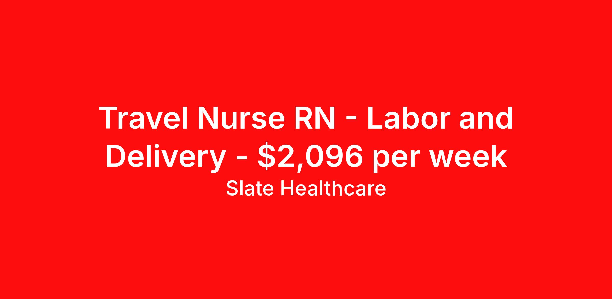 Slate Healthcare is seeking a travel nurse RN Labor and Delivery for a travel nursing job in Childress, Texas. Job Description & Requirements Specialty: Labor and Delivery Discipline: RN Start Date: 04/06/2026 Duration: 13 weeks 36 hours per week Shift: 12 hours, nights Employment Type: Travel Unit Specifics: None Need Specifics:RN to work Labor & Delivery, Recovery, Post Partum and Nursery. Nights shift 7P-7A - candidates will work 2 weekends per month. Average number of births per month 10-15. Certs Required: BLS, ACLS and NRP. If there are no OB/L&D patients candidate will float to Med Surg or ER as a helping hand. Must have min 2 years of experience. They schedule 1 RN per shift. EMR: TruBridge, OBIX for fetal monitoring Scrubs: Any color, just professional. Facility has housing available. Slate Healthcare Job ID 1c91eeb7-9931-4dbb-97f2-d288f5889ee8. Pay package is based on 12 hour shifts and 36 hours per week (subject to confirmation) with tax-free stipend amount to be determined. About Slate Healthcare Slate Healthcare is a premier travel healthcare staffing agency, connecting healthcare professionals with thousands of opportunities at top-tier hospitals and facilities across the country. We’re committed to supporting nurses and allied health professionals in building stable, fulfilling careers—while embracing the freedom and excitement that comes with travel. Our goal is simple: to offer flexibility, competitive pay, and personalized placements that align with each clinician’s lifestyle and career goals. At Slate, we empower our professionals to choose when and where they work, while ensuring they receive the highest compensation possible—because we believe that exceptional care starts with empowered caregivers.