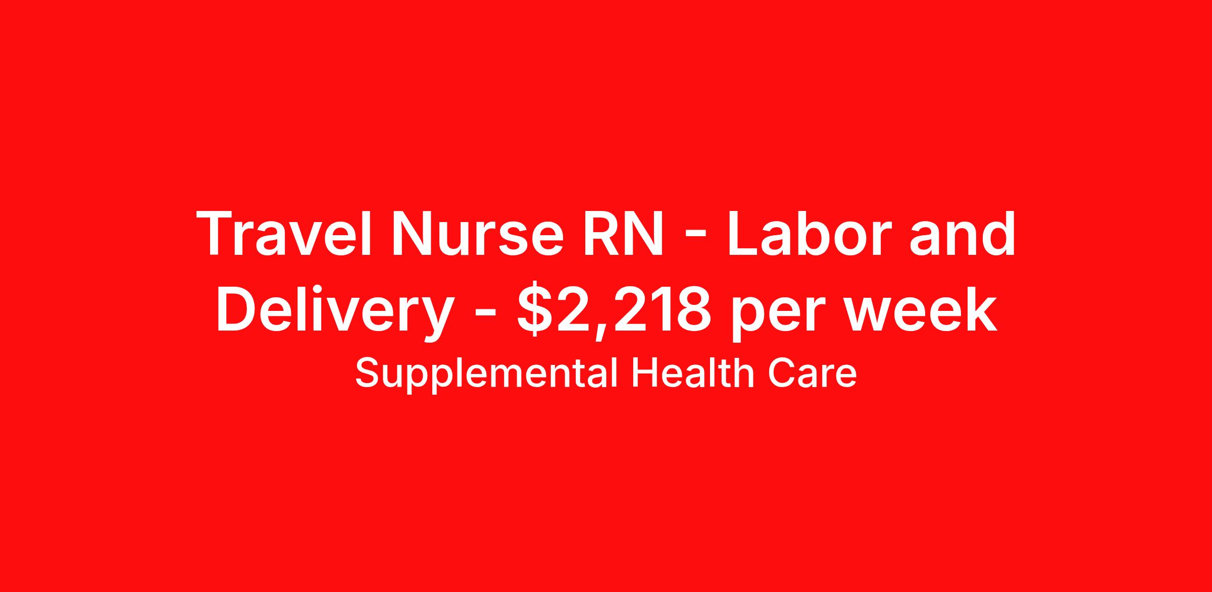 Supplemental Health Care is seeking a travel nurse RN Labor and Delivery for a travel nursing job in Manchester, Connecticut. Job Description & Requirements Specialty: Labor and Delivery Discipline: RN Start Date: ASAP Duration: 13 weeks 36 hours per week Shift: 12 hours, nights Employment Type: Travel Job Description: Step into a role where your Labor & Delivery skills make an immediate impact. Supplemental Health Care is connecting L&D RNs with standout hospital partners in Manchester, Connecticut. Whether you’re aiming to travel or stay local, we’re here to guide you toward your ideal assignment. Qualifications: Current Connecticut Nursing License American Heart Association BLS ACLS NRP or NALS 1-2 years of recent Labor And Delivery nursing experience AWHONN and STABLE preferred Labor and Delivery RN Contract Details: $1,998 - $2,218 per week* NOC shift available 13-week contract with possibility to extend Key Responsibilities: Meet with expectant mothers for prenatal visits and care for both normal and problematic pregnancies Coaching women, assisting with any complications and administering medications during birth Monitor fetal heartbeat and contractions during labor Provide guidance to new mothers on all aspects of recovery and infant care *Estimated weekly payment may include both taxable wages and tax-free reimbursements for meals, housing, and incidentals. Please speak with a recruiter for details. What We Offer: Full medical, dental, vision, life, and even pet insurance! Round the clock support. No matter where you are or what time it is, Supplemental Health Care is standing by. SHC's Share the Care referral program is the most dynamic, profitable referral program in the industry. 401(k) Retirement Savings Program with a wide range of investment options. Discounted and free online access to CEU courses through Supplemental University. Take the next step! Apply now for this Labor and Delivery Registered Nurse contract, or learn about the full range of LPN options we offer. Supplemental Health Care is an Equal Opportunity Employer. All candidates, including veterans and those with disabilities, are encouraged to apply. SHC will consider for employment qualified applicants with criminal histories in a manner consistent with the requirements of applicable local, state, or federal law. To learn more, visit www.shccares.com/eeo Supplemental Health Care Job ID 1465858. Pay package is based on 12 hour shifts and 36 hours per week (subject to confirmation) with tax-free stipend amount to be determined. Posted job title: Labor and Delivery Registered Nurse (RN) About Supplemental Health Care At Supplemental Health Care, a simple belief in the power of caring guides a unique commitment to world-class service in healthcare staffing. For 40 years, we’ve supported talented professionals pursuing their life calling in hospitals, schools, home health, corrections, behavioral health, and other settings. At SHC, we inspire vital connections and enrich lives and inspire better outcomes. As recipients of the Best in Staffing Awards for both Client and Talent, Supplemental Health Care is proud to be among only 2% of staffing companies singled out for the distinction based on the real feedback of our employees and the clients we serve. SHC has also earned The Joint Commission’s Gold Seal of Approval and is named among the Largest Health Care Staffing companies in the United States by Staffing Industry Analysts. We are also thrilled to recognize our very own SLP, Dr. Kelly Byrd as the American Staffing Association 2024 National Staffing Employee of the Year and Health Care Sector All-Star. We’re honored to connect Dr. Byrd to employment, share her incredible story, and support her family literacy nonprofit. For everyone that we serve, SHC is the place where caring hearts thrive. Benefits Referral bonus Benefits start day 1 401k retirement plan Continuing Education Discount program Health savings account